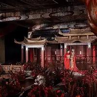 不多时,来到一座豪门大宅前,轿子径直驶入中堂。老翁牵着萧生出轿,与众宾客相见。堂上铺设红地毯,两位新人已盈盈交拜。老翁让萧生和一位宾客手持花烛送入洞房。