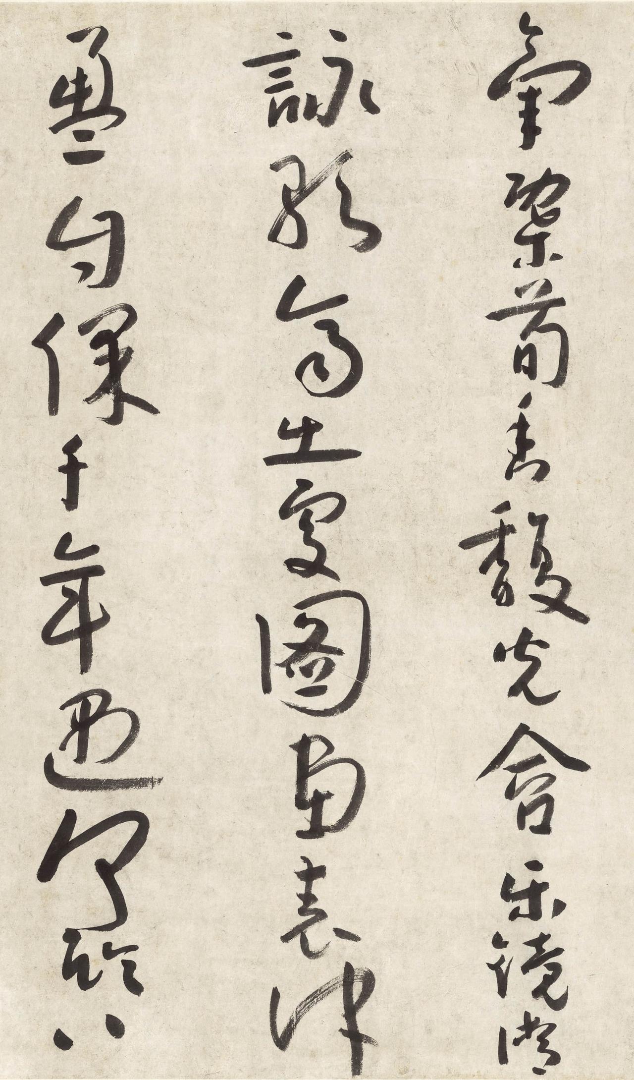 工具上就有变化。六十岁以后他常用秃笔,笔毛的弹性已经不太行了,很多精细的动作做不出来。这样一来,笔画天然就带着一种不那么灵巧的劲儿。