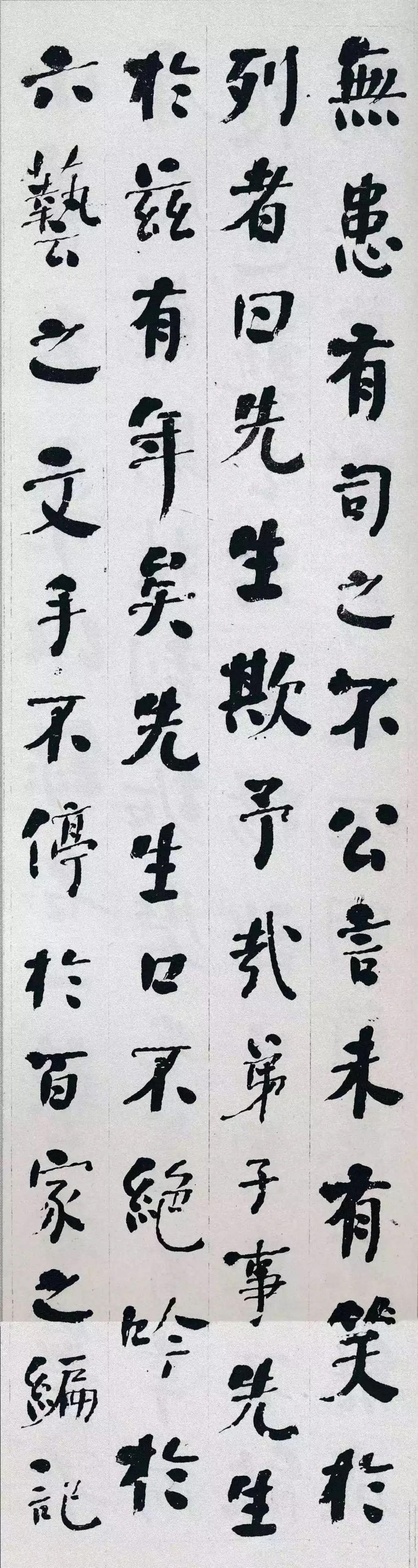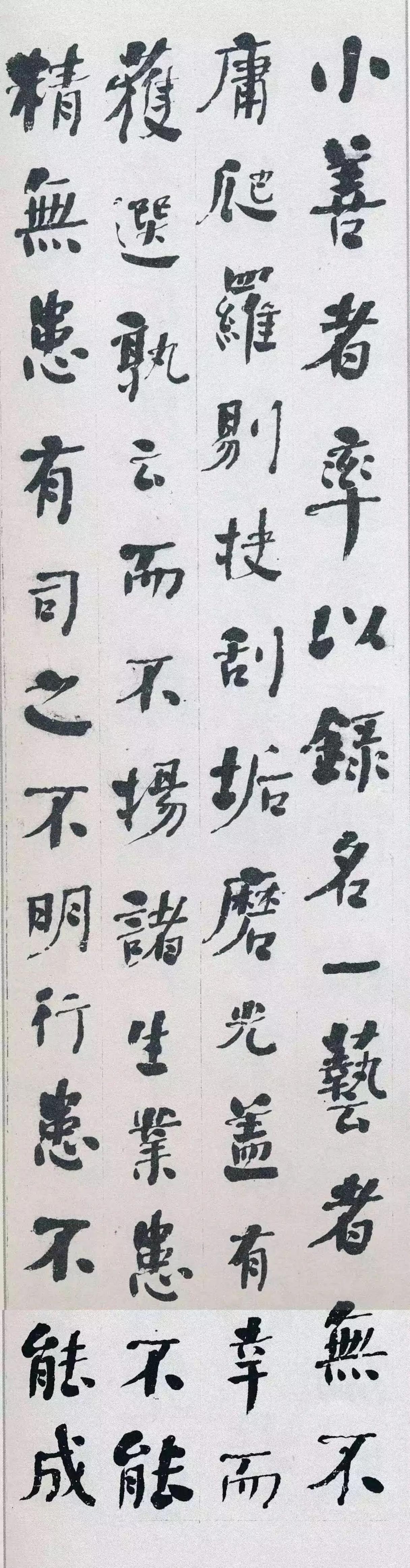 其实这跟何绍基写字的过程有关。他中年的时候对南北朝的字广泛涉猎,那还是一个到处吸收、四处摸索的阶段。这个阶段留下来的正经作品本来就不多,《进学解》恰好就是这个过渡期的产物,里头有些试来试去、还没完全定型的东西。