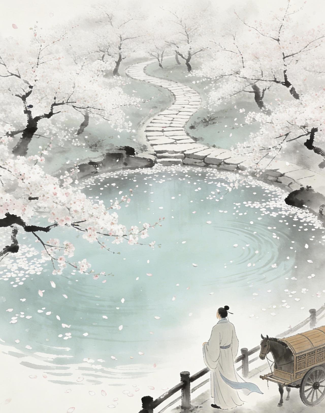 《北陂杏花》是一首人格的赞歌。王安石借水中杏花,告诉世人:政治地位可以失去(碾成尘),但精神品格不能屈服(吹作雪)。 在名利场(南陌)与精神净土(北陂)之间,他毫不犹豫地选择了后者。这份孤芳自赏的底气,正是他千年来最动人的光芒。