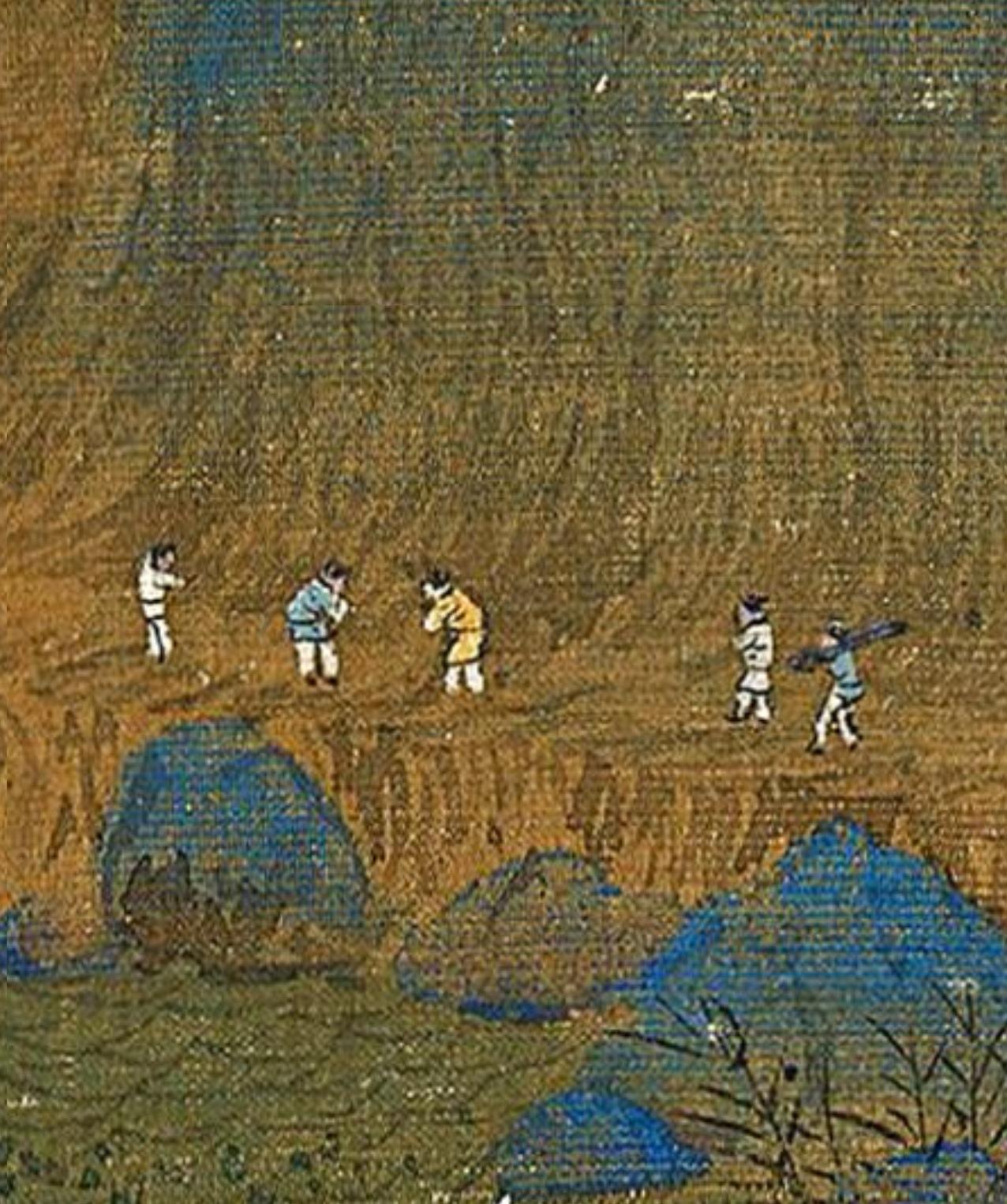 《千里江山图》虽然是宏幅巨制,但是山大水大,人物却非常小,每个人物都像米粒一般大
