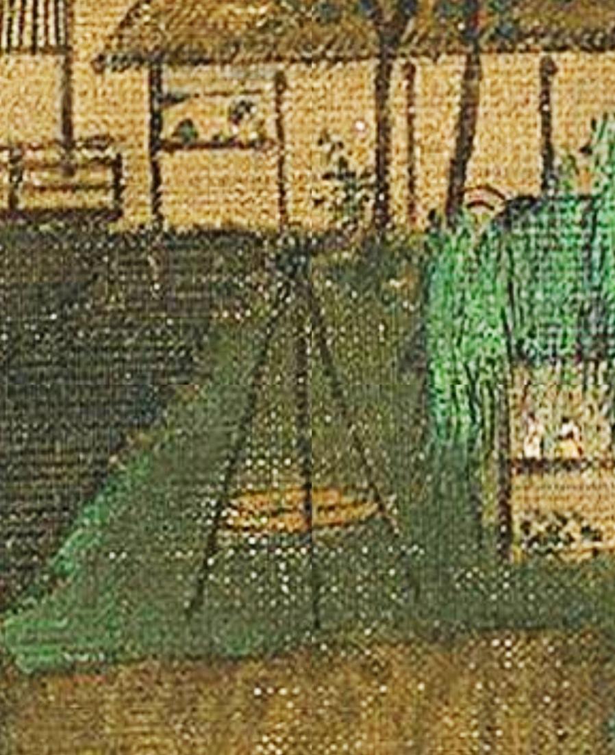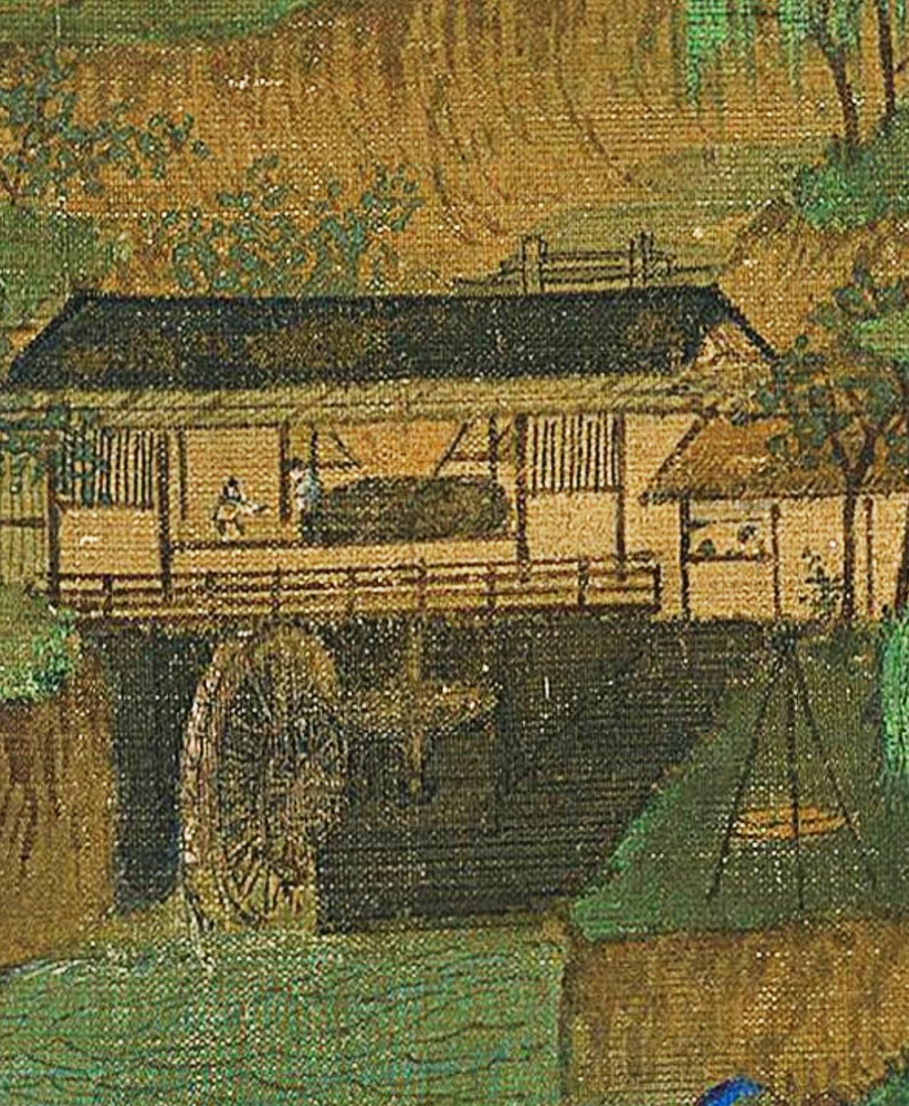 《千里江山图》中这处磨坊画得虽然是个大概,但是有些细节也画得非常认真,比如说水房