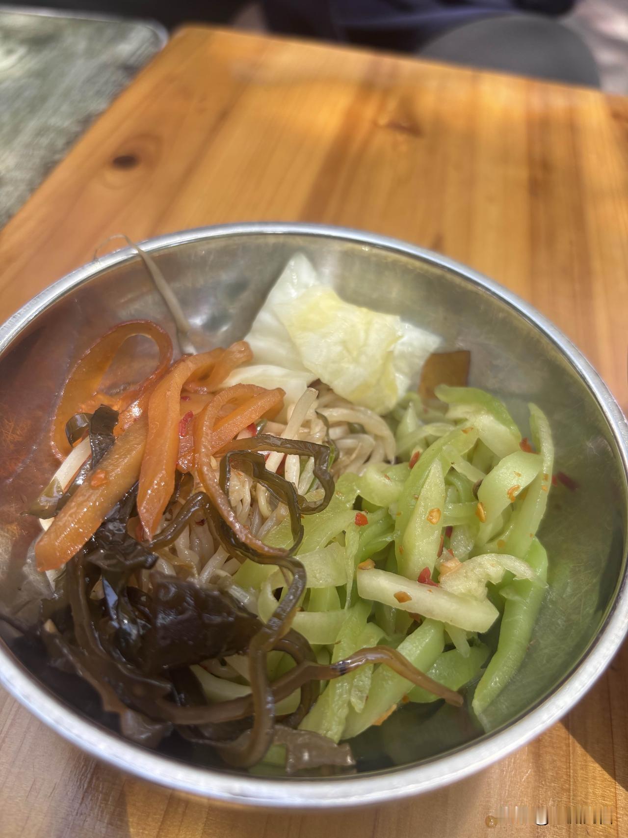 你不能强求它的味道,偏硬,偏淡,正好配小菜,将近十种小菜,虽然不是特别特别好吃,就是一个字——咸,但总有一两样能符合你的胃口。