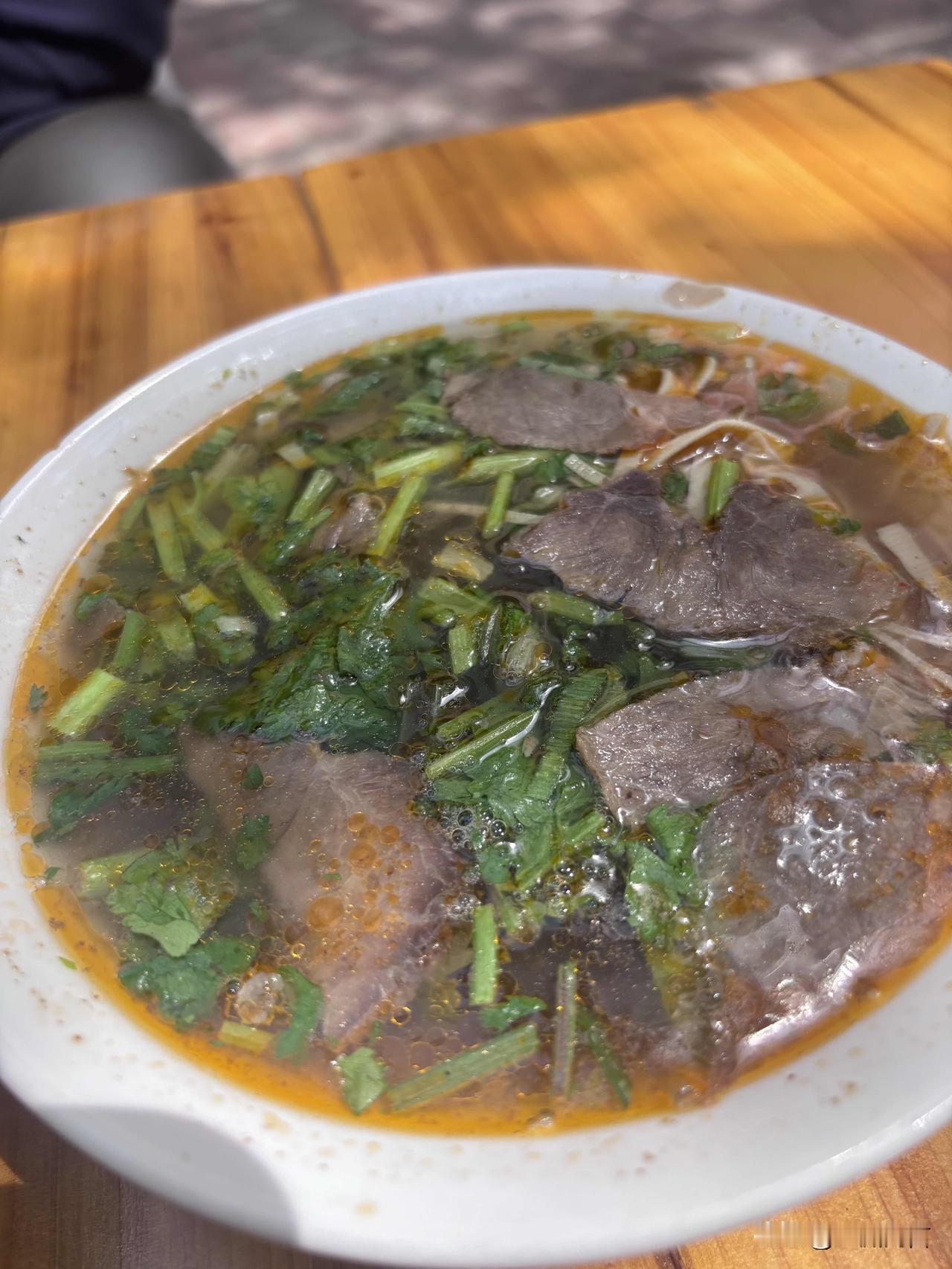 牛肉汤,七块钱一碗,配在一起吃,觉得很鲜。这几年调料就要多得多,滋味更好点。