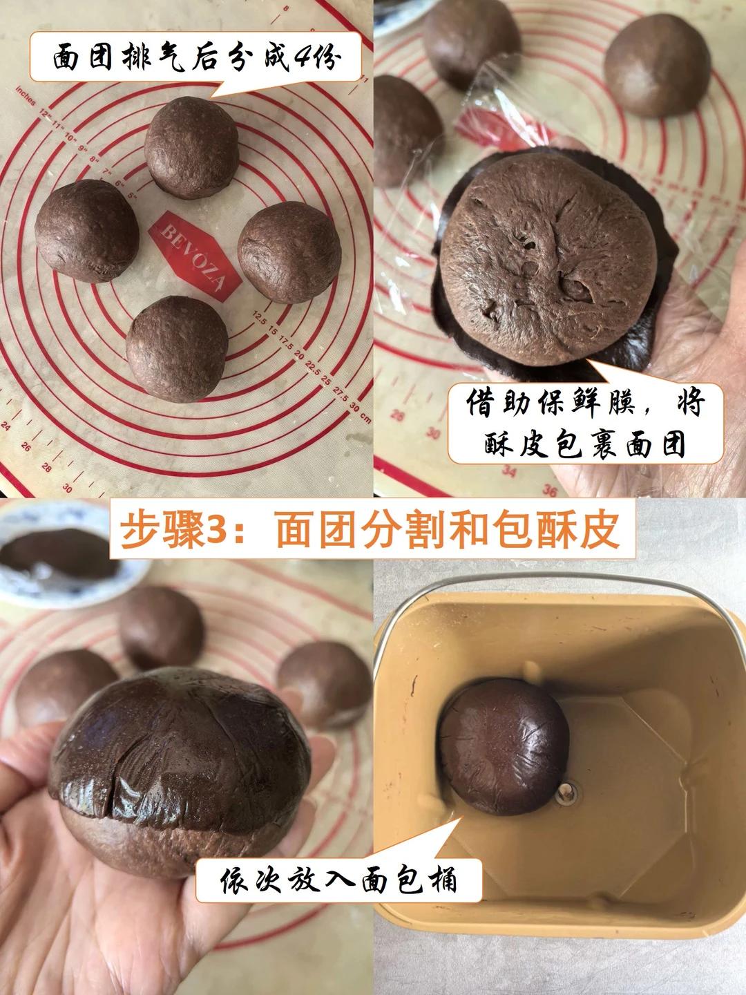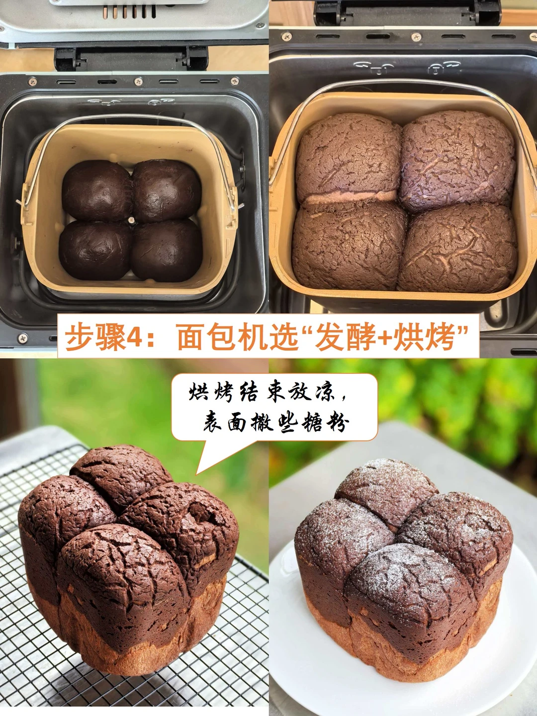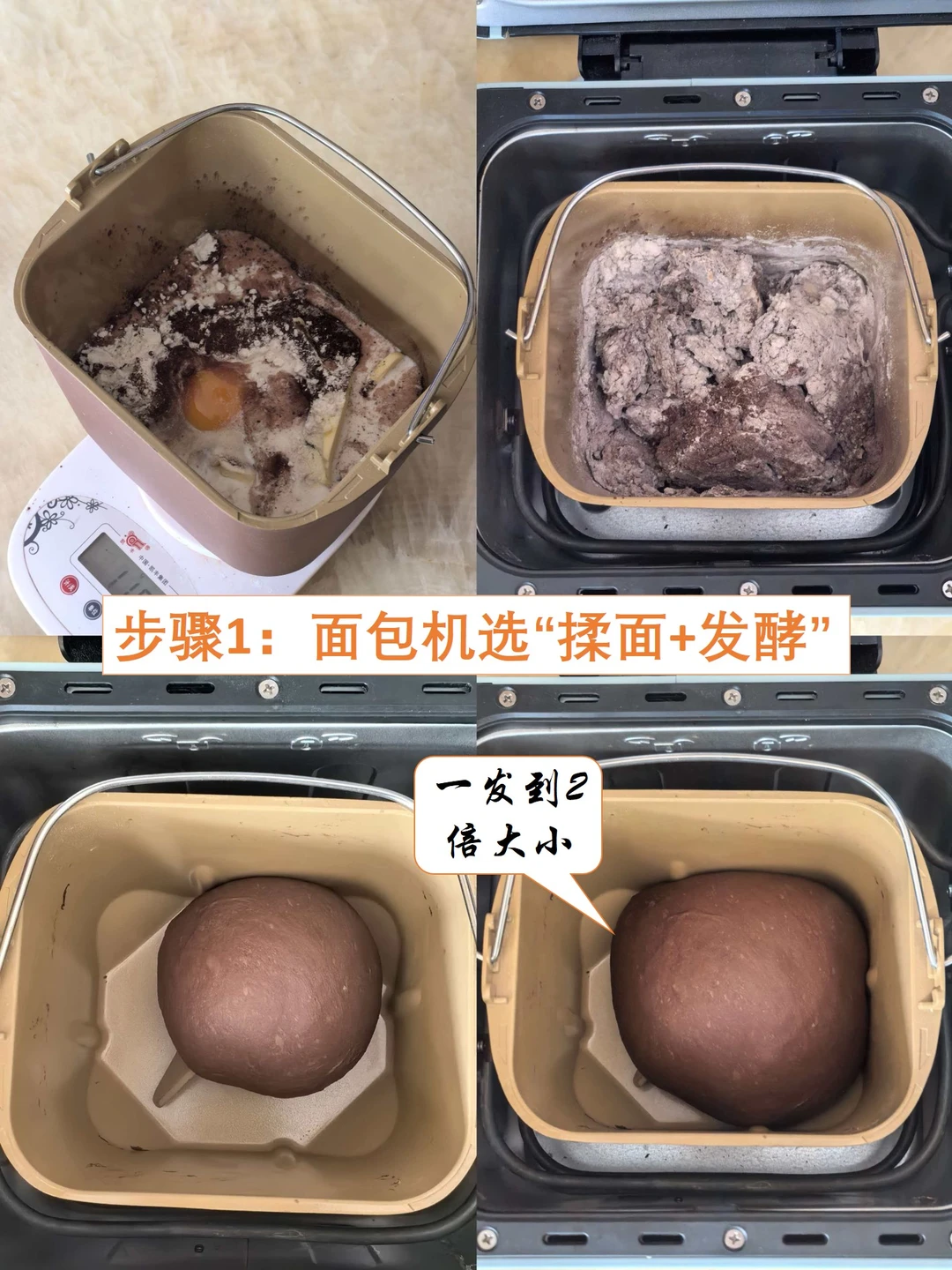 2️⃣ 面包机选“揉面+发酵”和“发酵+烘烤”程序,等它自己工作。