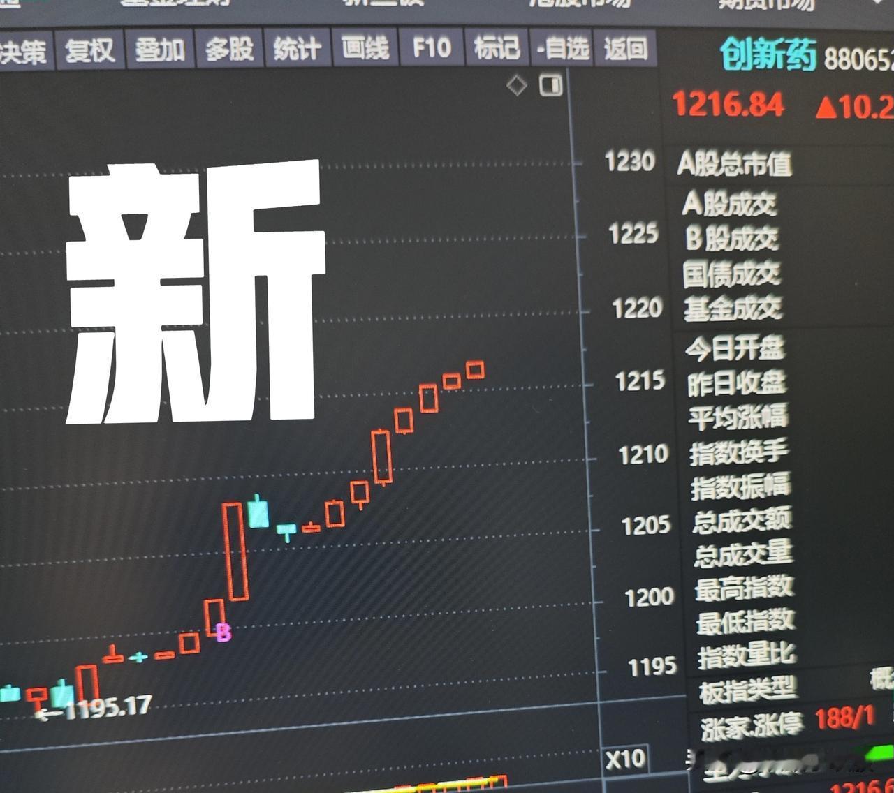 创新药是真的要爆发了吗?要火箭升空了吗? 请你先看该微头条下面的三张图,你就应该一目了然。我昨天说了创新药最早是今天,最晚也在本周,肯定有一波凌利的上涨。在上午大盘高开上涨的时候,创新药似乎是没有什么动静,有人给我私信留言说啊,创新要不是要涨吗?为什么还绿了呢?从我给出的这三幅图来看,分时图和5分钟的K线图看的最清楚,下午1点半以后是一个45度斜率的拉升, 日线图上留下了一个大大的长腿,因此,我分析明天创新药一定要一个不错幅度的上涨。