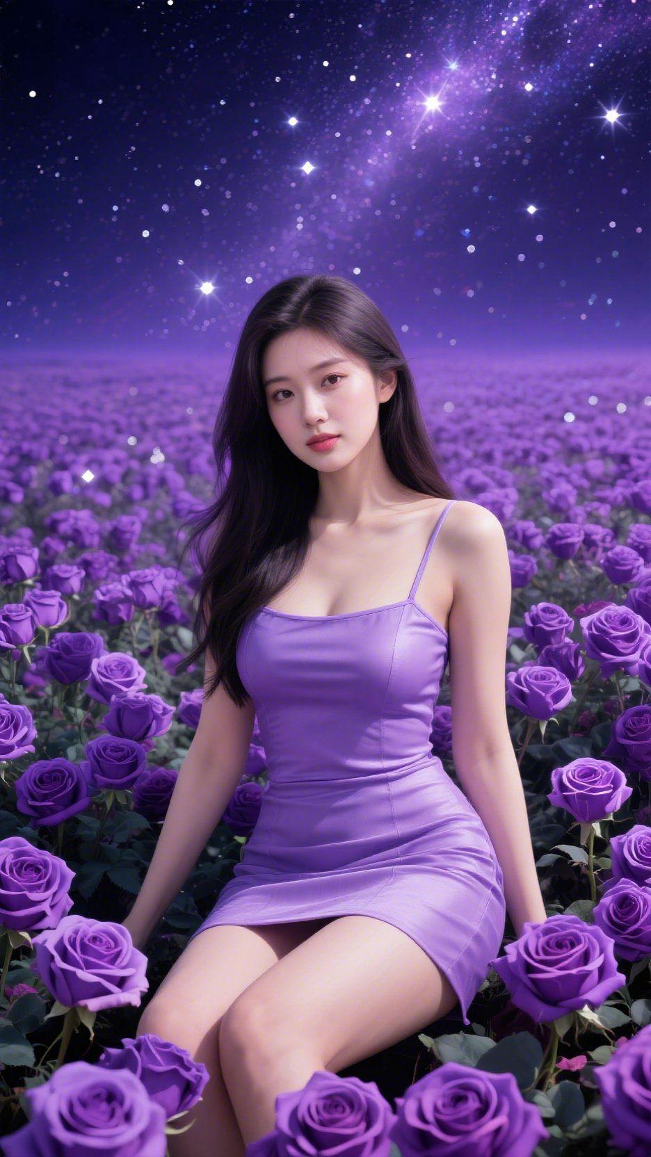 紫夜玫瑰海 暮色漫过天际,整片旷野都浸在紫调的星河碎光里。 漫无边际的紫玫瑰