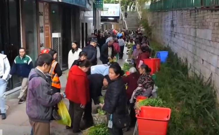 当时周围还没完全苏醒,路边只有零星摩托驶过。站台上陆续有人赶来,肩上竹筐装满豌豆尖、青菜、野蘑菇,叶片还挂着露水,衣角和裤腿沾着泥点子。