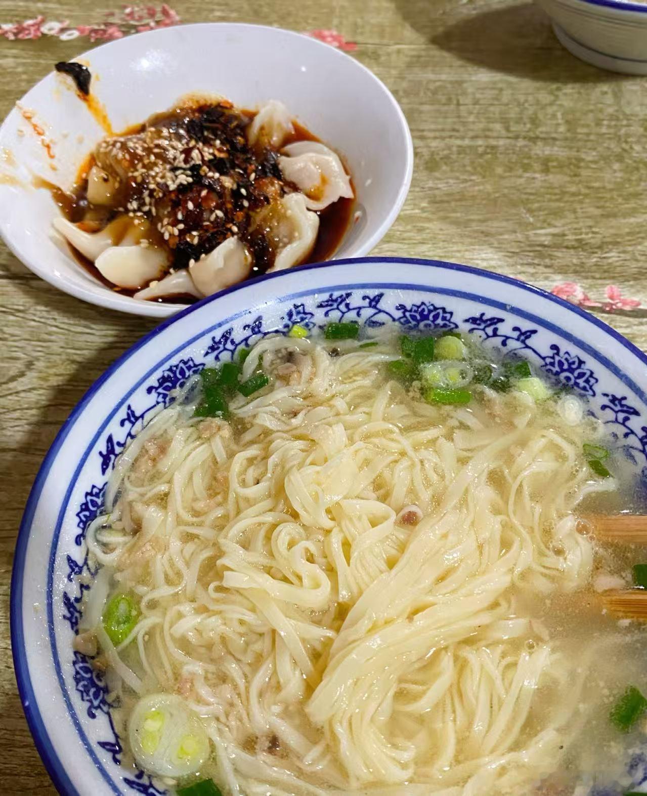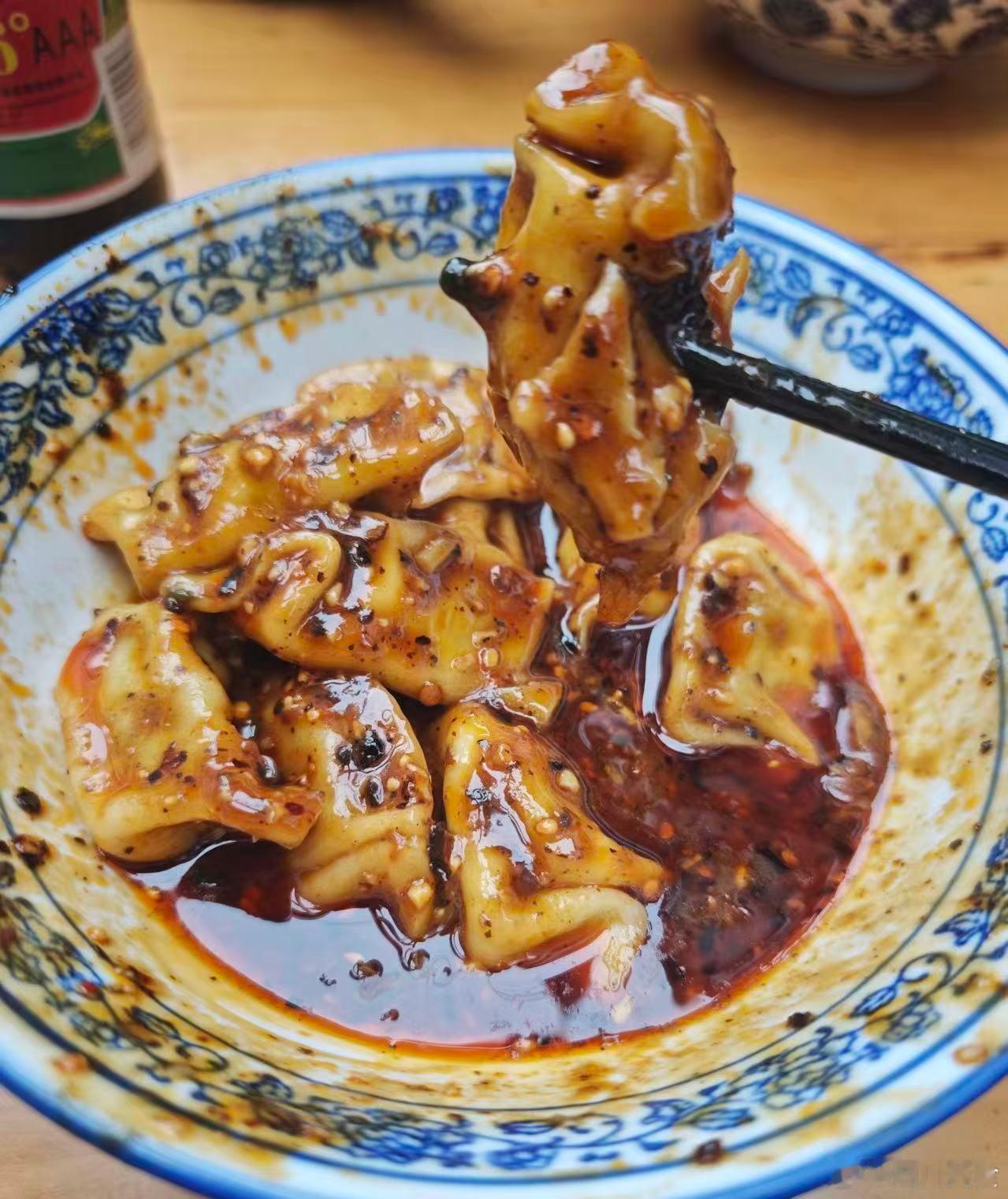 刘抄手(青果街店):金堂有很多刘抄手,这家是老店,街边小店环境不算好,点菜快上菜也快,比较推荐红油抄手和原汤抄手,红油确实不错很香,原汤就是小时候的味道,简单清淡。手工面皮,滑嫩煮不烂,口感不错。