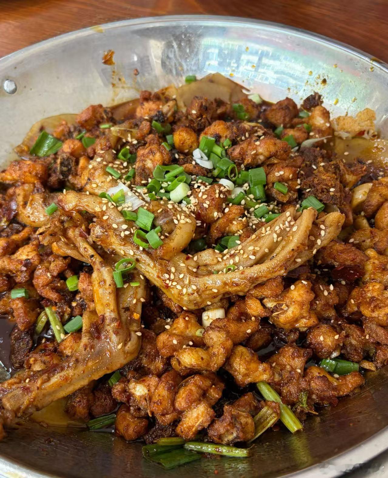 香味掌干锅:金堂很有名的一家干锅,味道是走干香干香的路线,不咸不油,干锅鸭掌排骨双拼,排骨软糯入味,鸭掌稀溜耙,入口即化,配菜也很丰富,人均六七十,性价比不错。