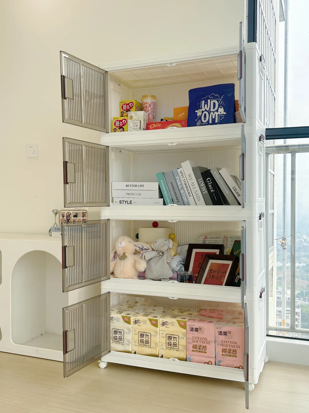 ➡️[四R]层超大空间,零食、纸巾、绘本、杂物全塞得下,客厅瞬间空无一物