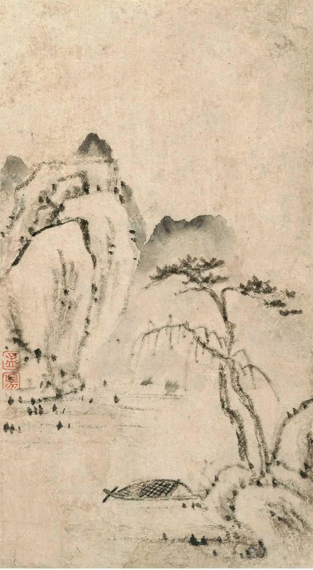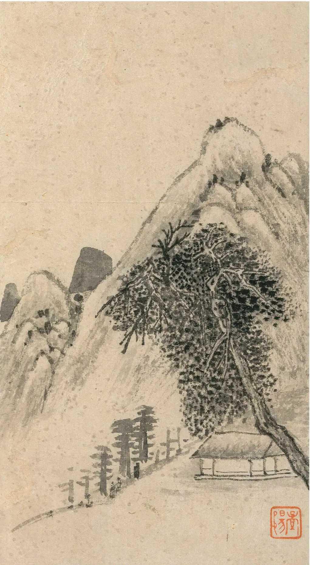 【程嘉燧《枯笔山水册》:笔墨极简,价值极高,枯笔山水,天价底气】山河册页 山水