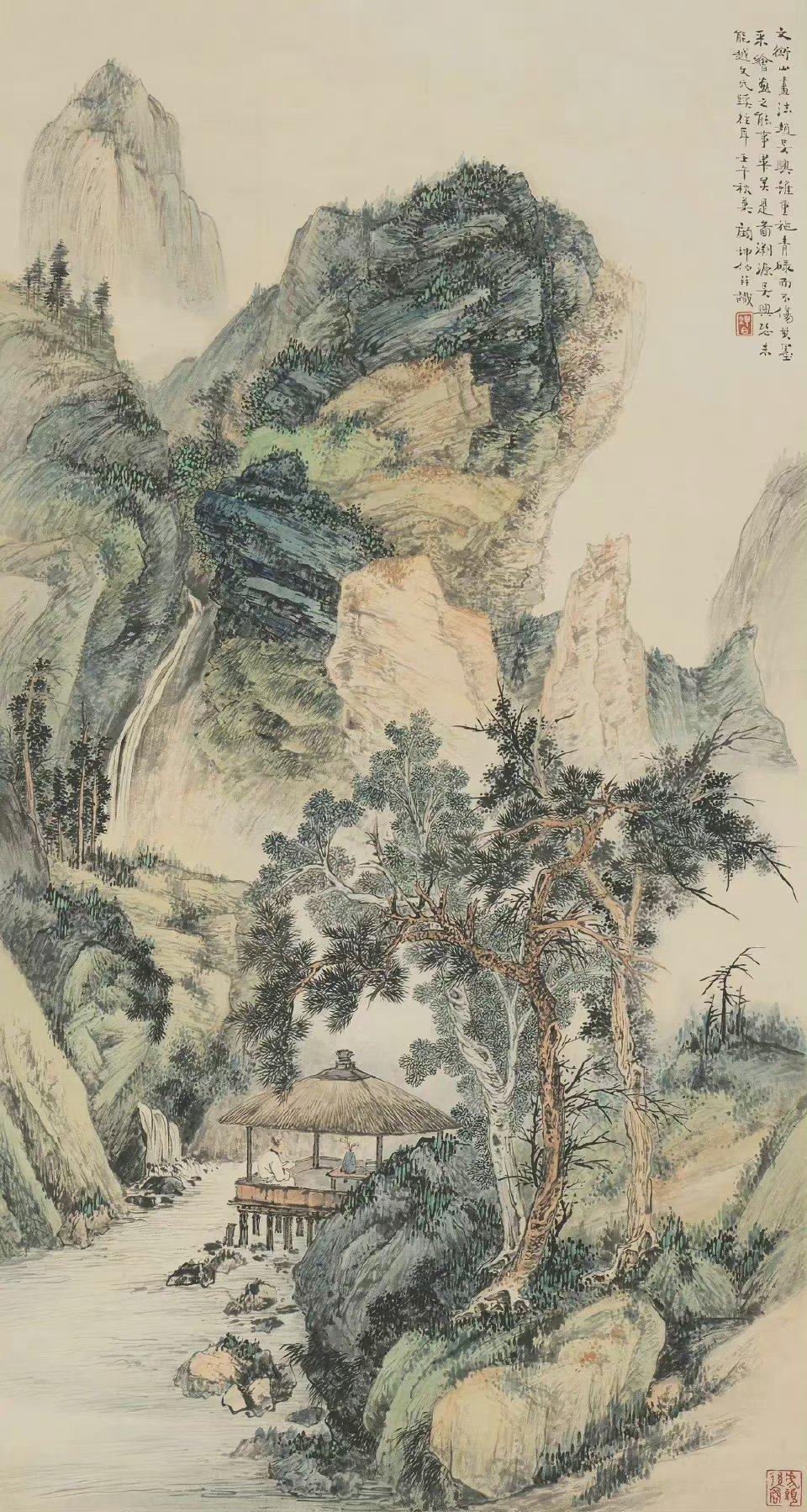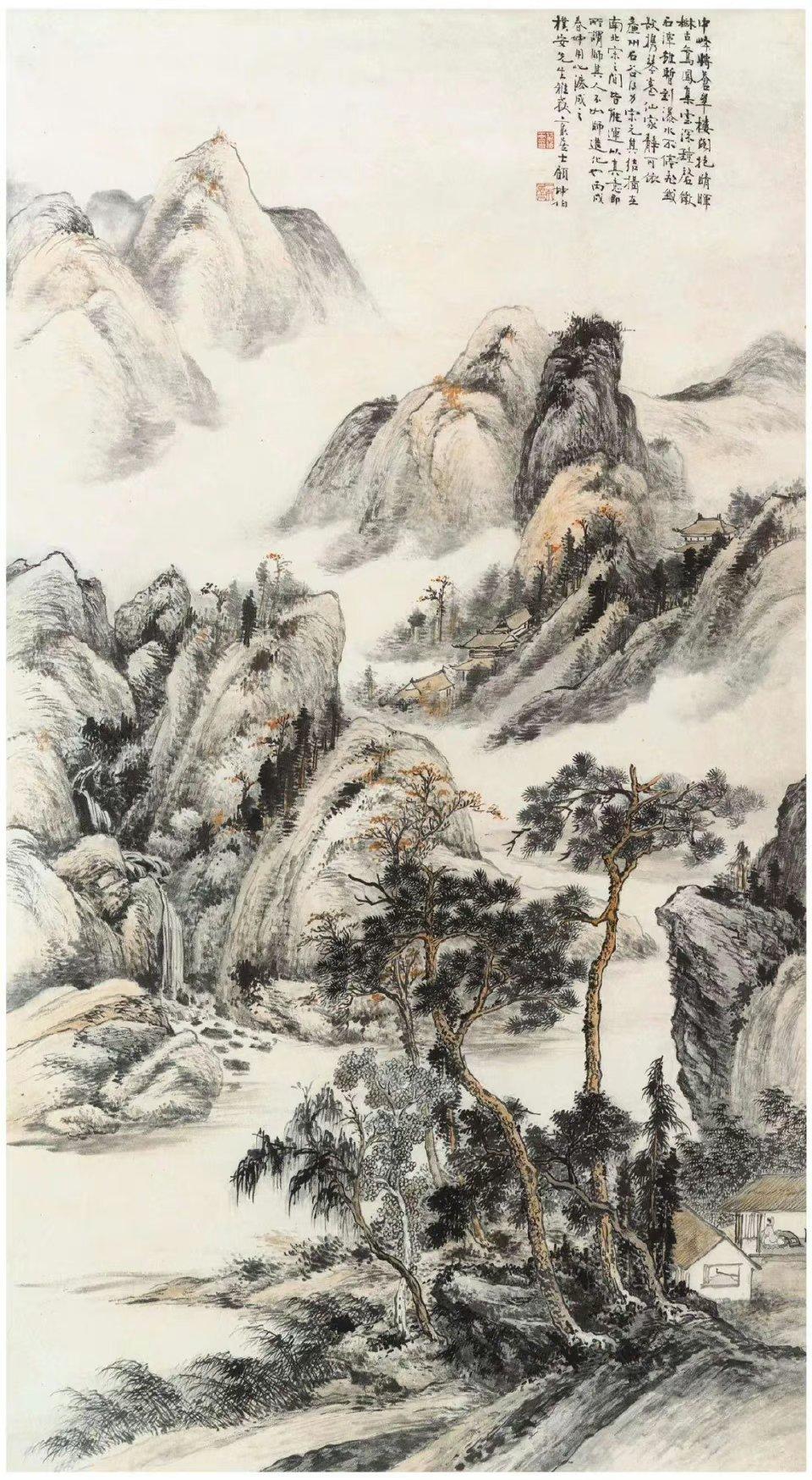 独创青绿山水风格,将唐宋金碧山水的浓艳,与元明浅绛的清淡自然结合,色调秀丽、温润、清新 。