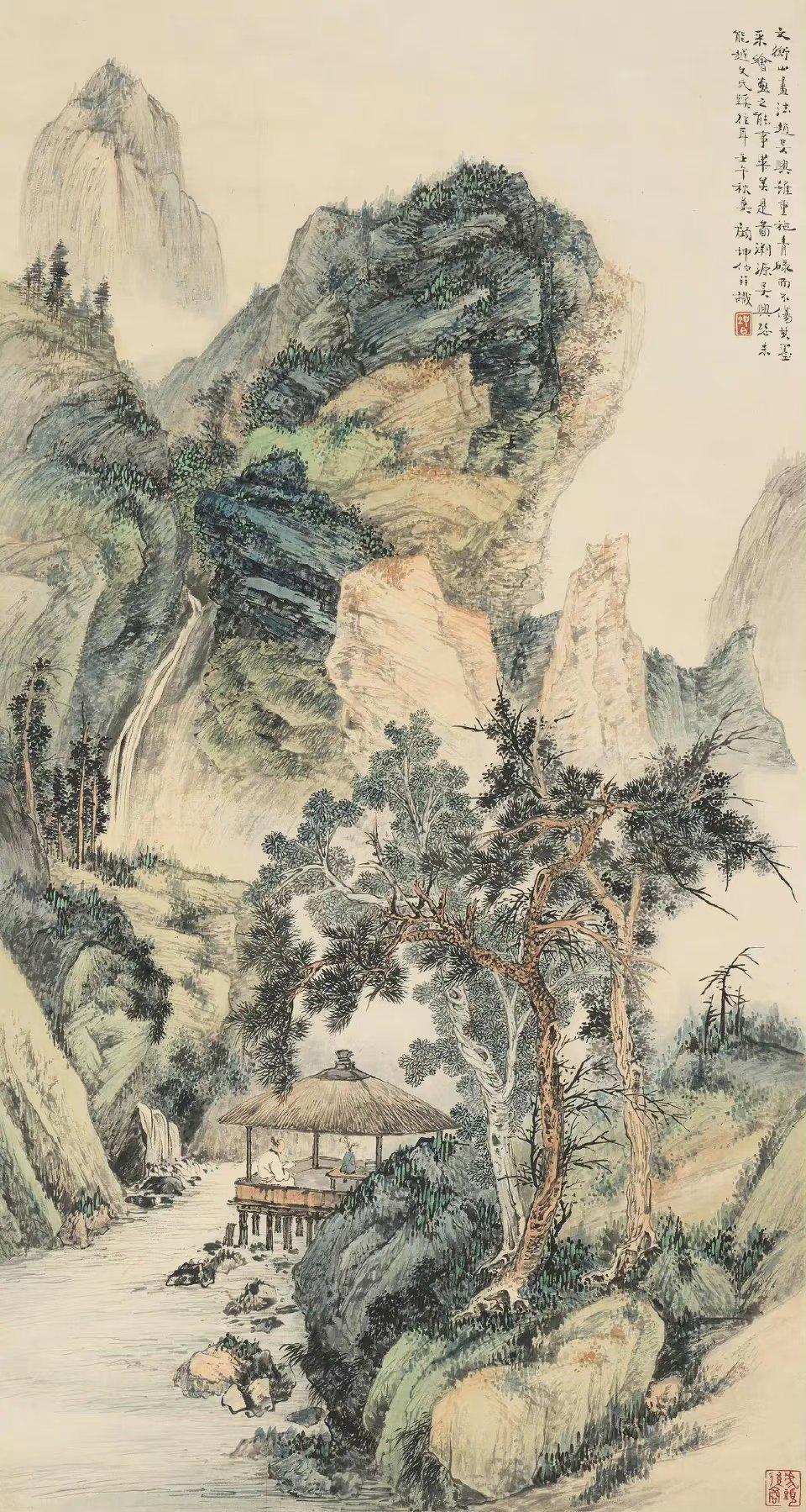 顾坤伯(1905—1970),字景峰,号二泉居士,江苏无锡人。现代著名山水画家、美术教育家。早年师从吴观岱,毕业于上海美专,后任教于中国美术学院(原中央美院华东分院),主持山水画专业教学,是现代山水画教学的奠基人之一。