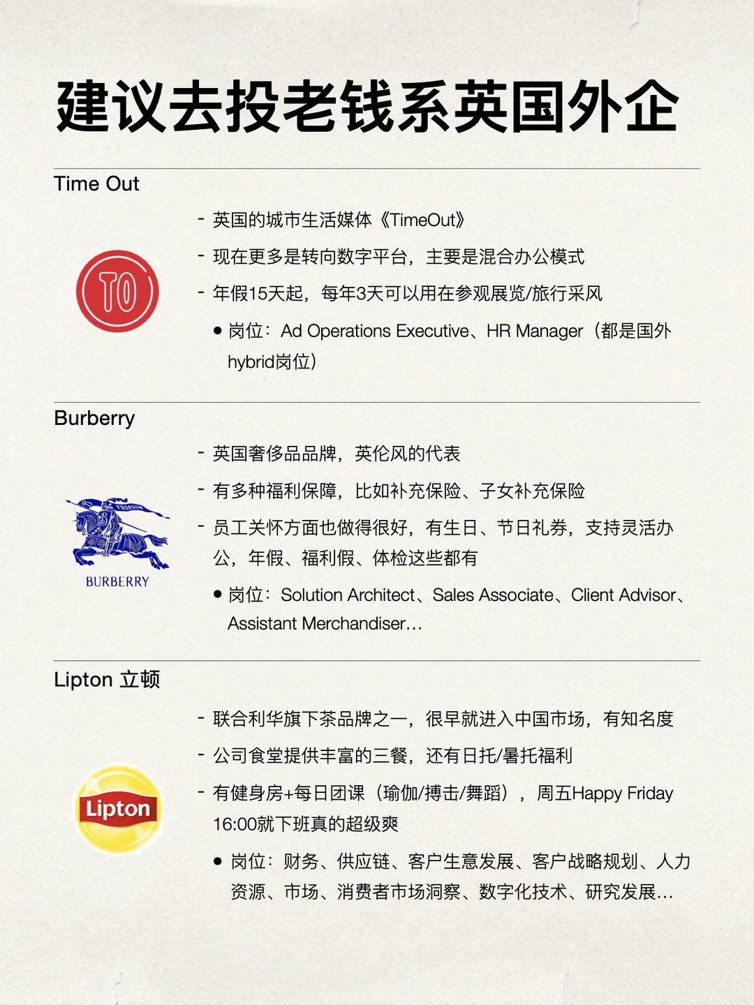 如果是想找那种节奏稳定、生活质量比较高的工作,那真的可往英国外企这个方向冲