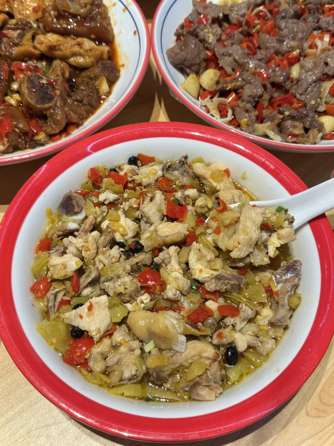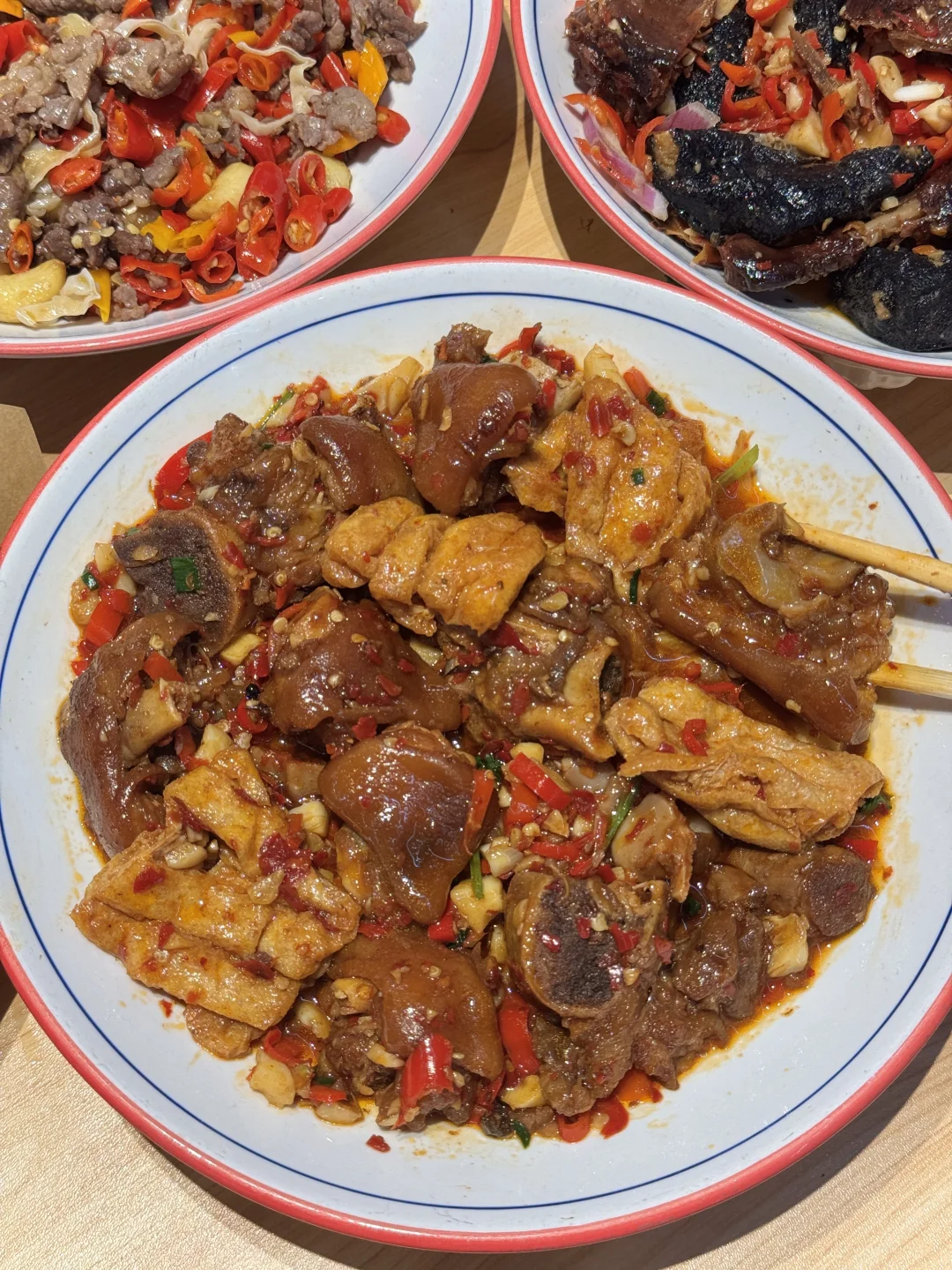 山楂牛排好吃到特意打包带走了两份🥹🥹醋蒸鸡、糯猪脚、黑鸭煲…盲点的一大桌都没踩雷,道道菜都好下饭!