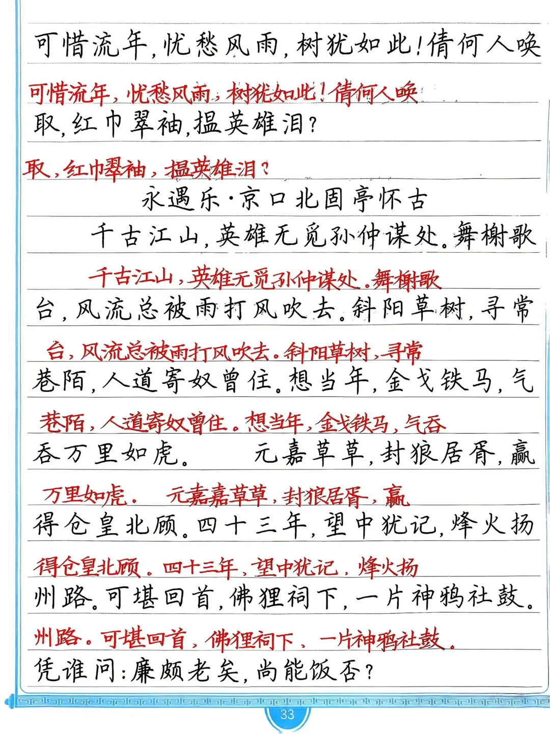 黑笔是著名硬笔书法家荆霄鹏写的,蓝笔、红笔是高中一线语文兼卷面书写老师...