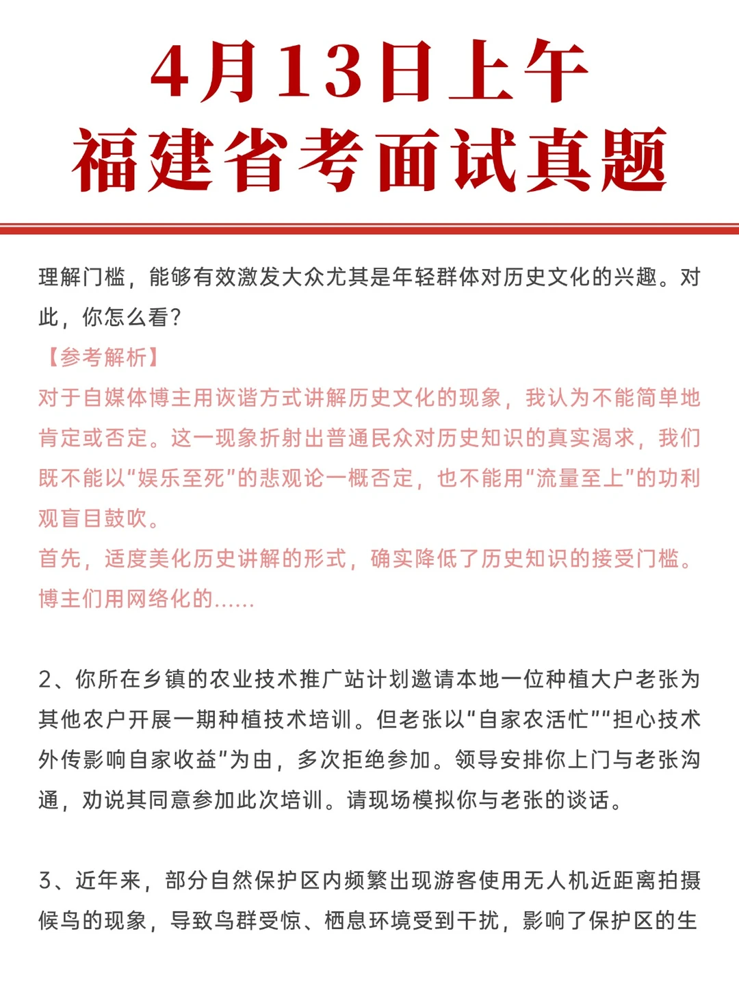 4.13福建省考面试真题已出,解析>>