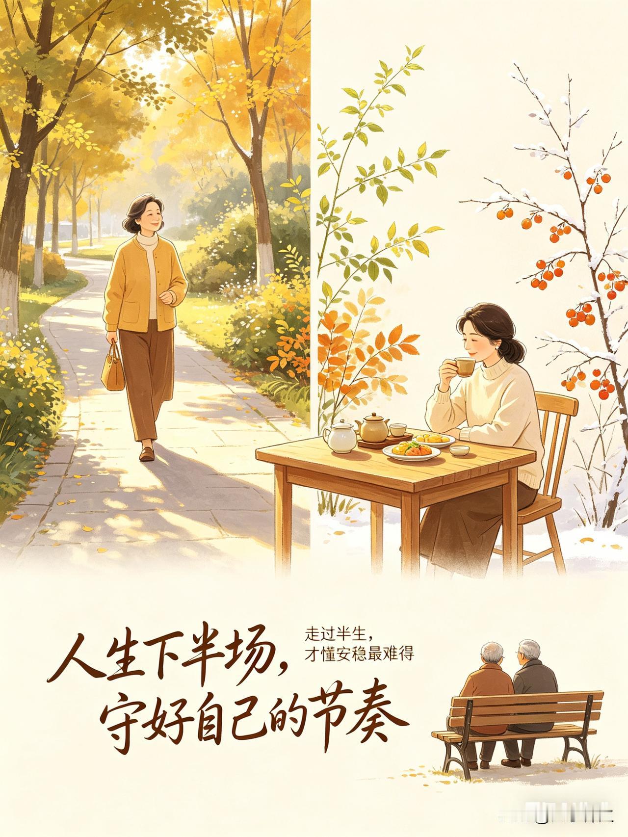 清晨漫步,闲暇品茶,用心经营三餐四季,珍惜身旁真心之人。