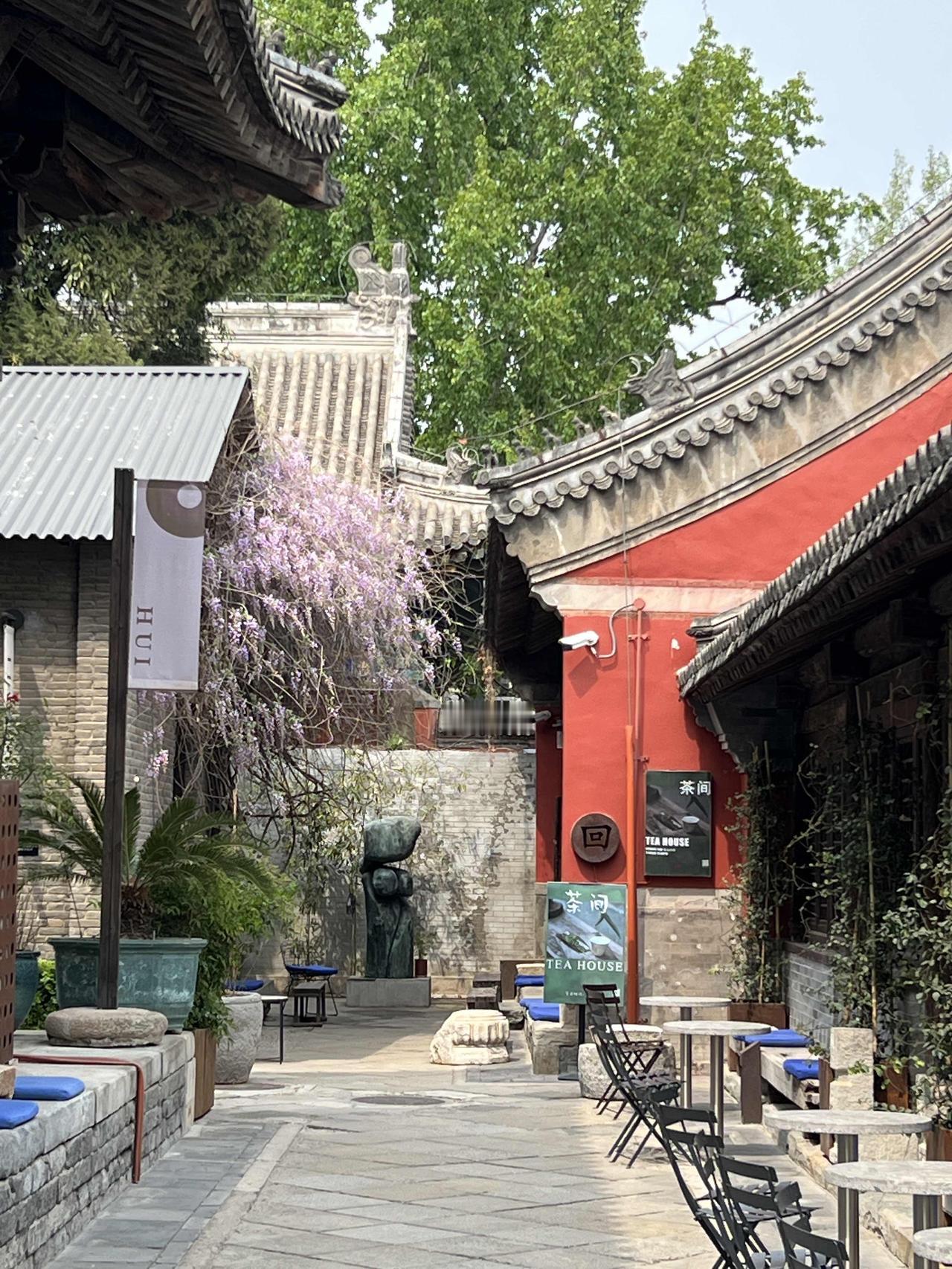 嵩祝院北巷,有一个被胡同裹夹着的红墙院落。这里的前身是明代皇家印经厂,清代康、雍、乾时期建起了法渊寺、嵩祝寺和智珠寺,成为清代北京藏传佛教中心。从五十年代起,这里停止了宗教活动,上世纪七十年代,法渊寺被拆除,建起了橡胶厂、电视机厂,嵩祝寺、智珠寺得以残留。2007年,一位热爱北京胡同的比利时人温守诺偶然发现了这里,开始修缮、改造。他恪守修旧如旧的理念,用了5年的时间,完成了修缮工程。老建筑被完整的保留了下来,还抢救了80多幅壁画。2012年获得联合国教科文组织亚太文化遗产保护奖。如今,这里已经是免费开放的休闲艺术空间,古寺、艺术、餐饮和茶室相融合,典雅、舒适、安静……