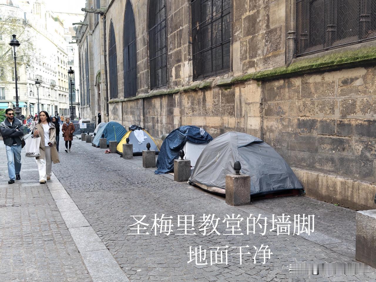 另一个地方是蓬皮杜艺术中心附近的圣梅里教堂外,墙脚有几顶帐篷。