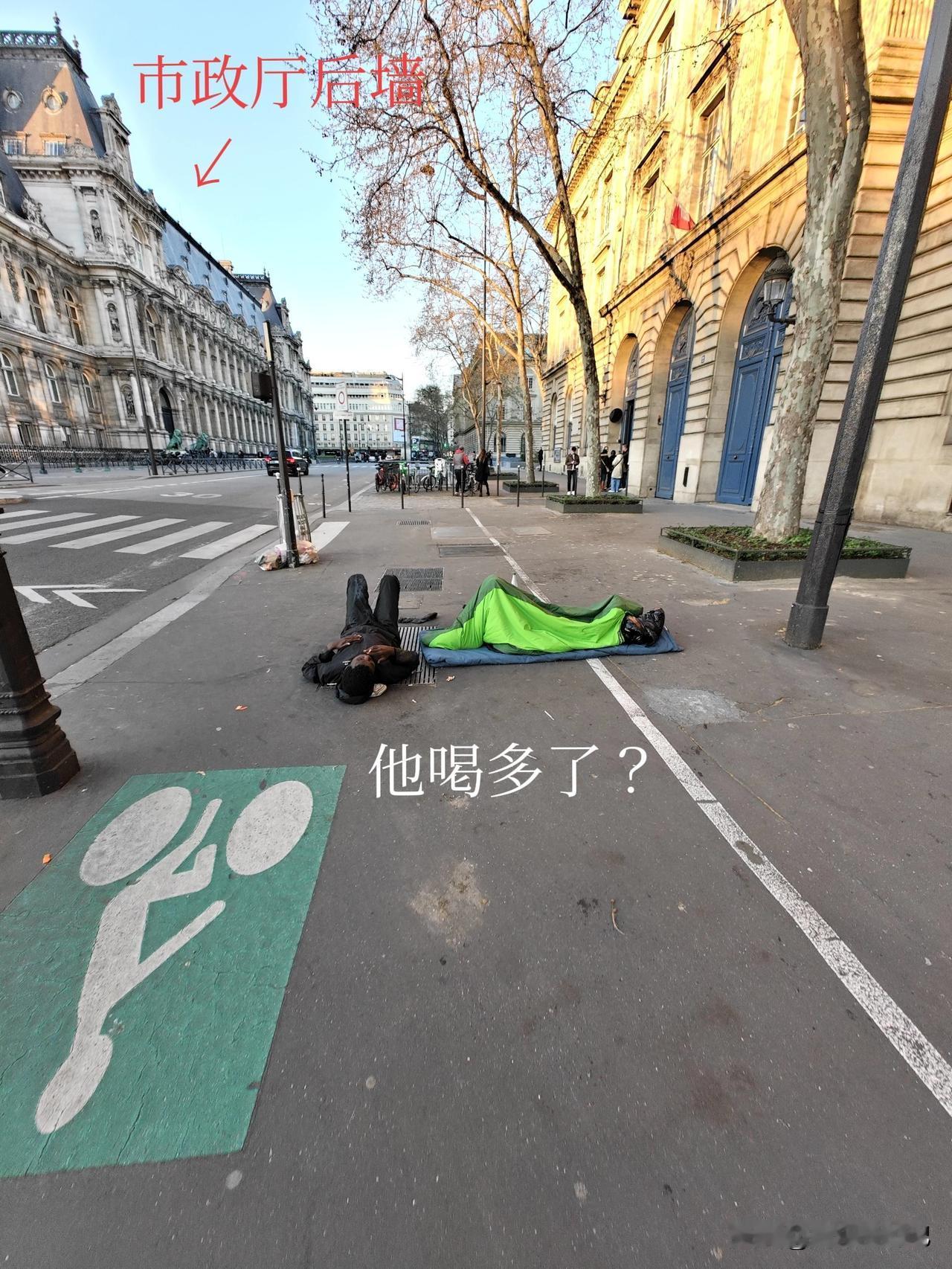 碰到两个喝多的,一边抽烟一边躺着,就在市政厅背后的人行路上。人们来来往往,也相安无事。没有骚扰别人,也不影响公共秩序,如果兜里也有烟,递给他一根又何妨?