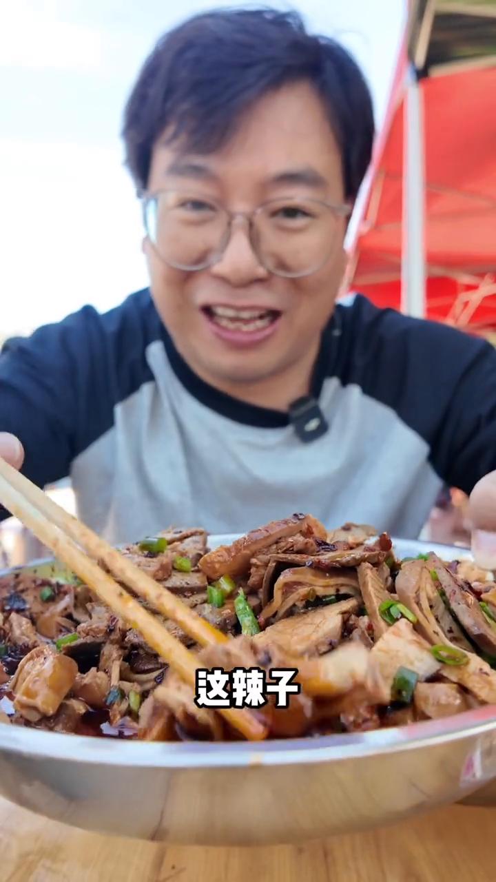 它这第一口下去,非常非常特殊的云南那种香料的味道,太神奇了,捞一锅,闹一口,吃肉不喝酒,人生路白走,太香了。这种东西,它必须得大口吃,你小口吃,没感觉,辣椒油蘸满,一扣,半下。