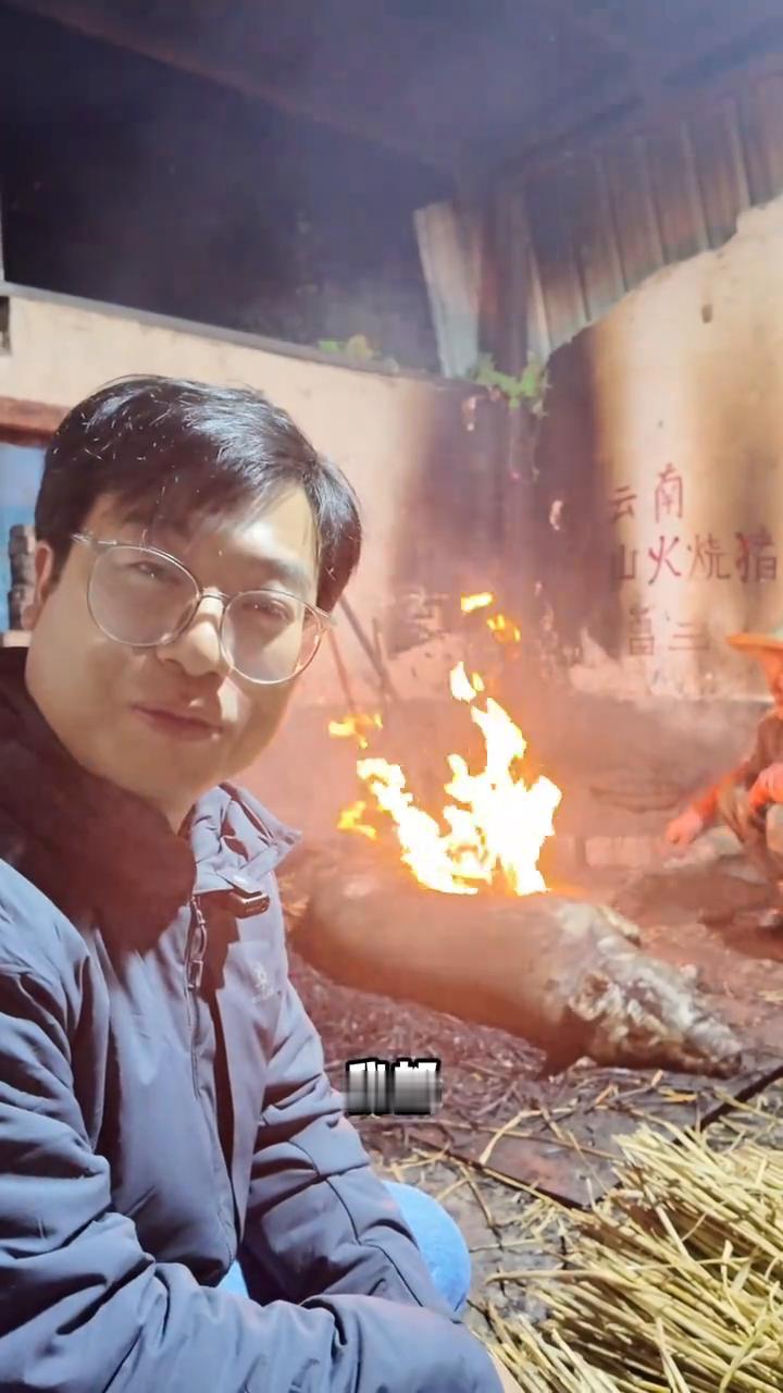 保山稻草烧猪。 兄弟们,这可能是大嘴长这么大见过的最生猛的美食,活猪稻草。烤到7