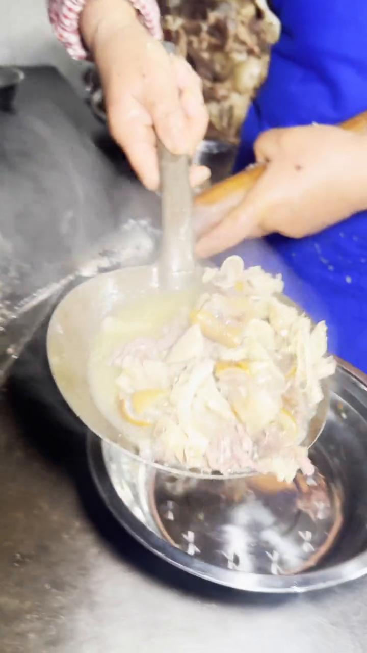兄弟们,这肉太凶了,你看这颜色太漂亮了。这一盆肉山,每一样都得来一点。这个就是牛连田,一样配上一点牛肚。各位吃什么?直接去锅里捞,这汤上飘着油,还得来点这汤,在一起的。这就是拼好的牛扒呼,什么都有。