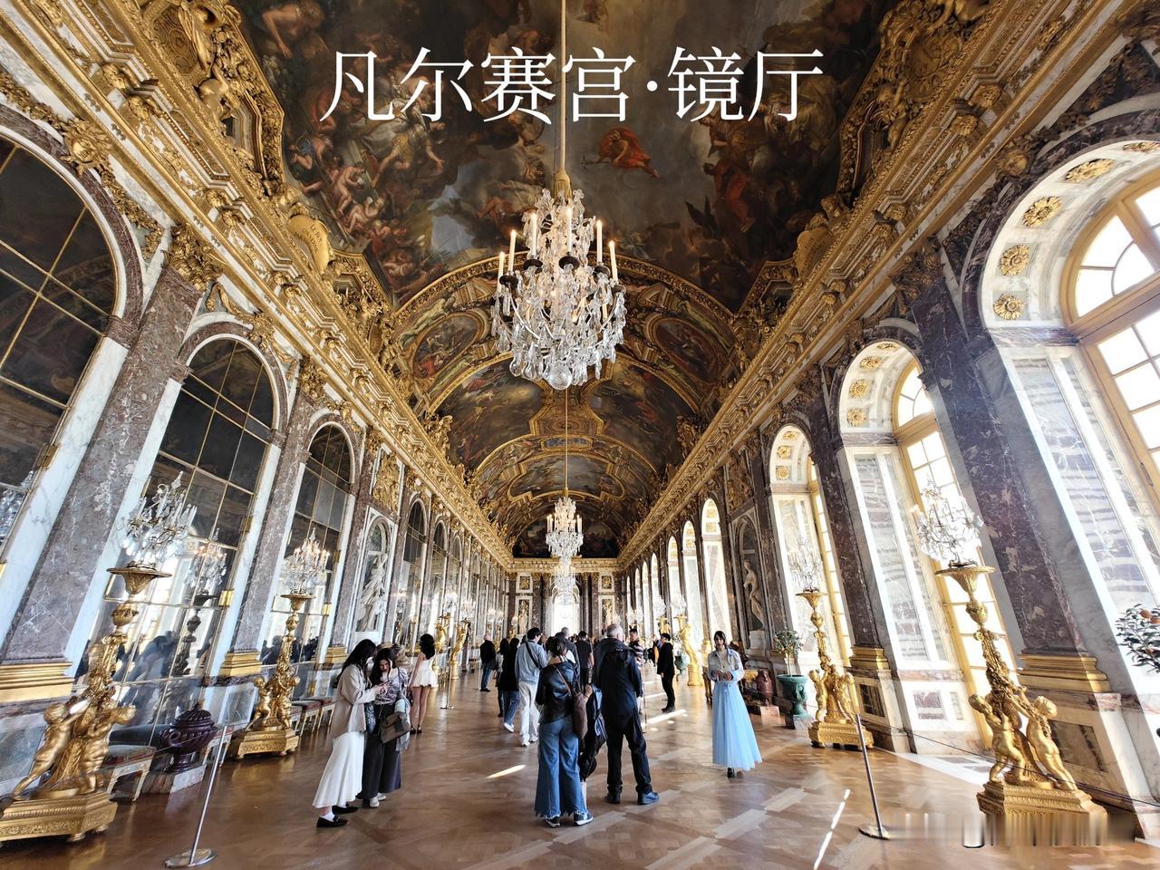 凡尔赛宫里有一个独特的镜厅长廊,位于国王与王后套房之间,西侧有17扇拱形落地大窗正对着花园, 东侧有17面巨型落地镜靠墙。