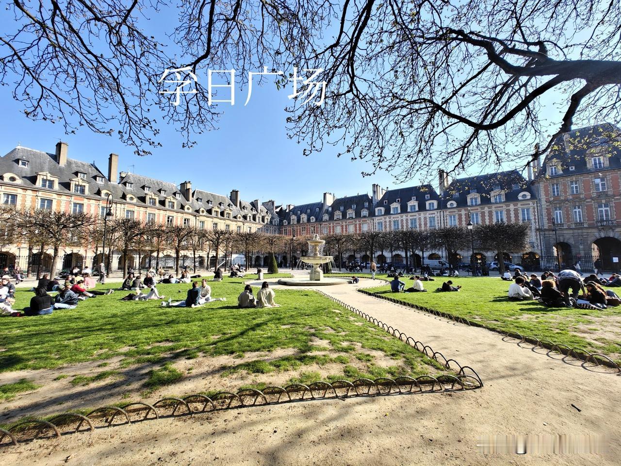 它是巴黎最古老、最完美对称的皇家广场住宅,一个回字形的联排别墅群,统一红砖墙、蓝色石板屋顶,底层是连续的拱廊(骑楼),不仅可以遮阳避雨,还遍布画廊、咖啡馆、古董店。