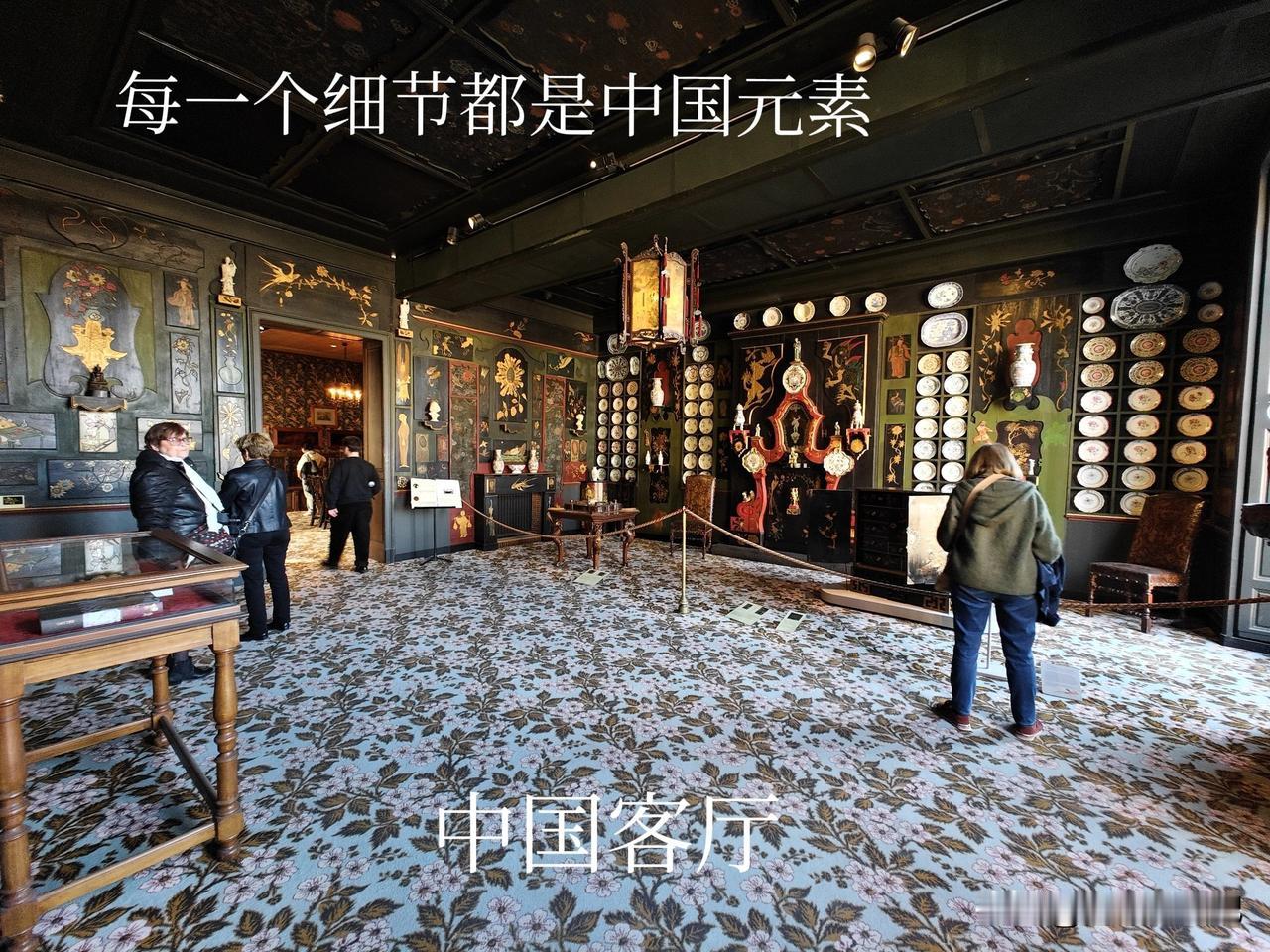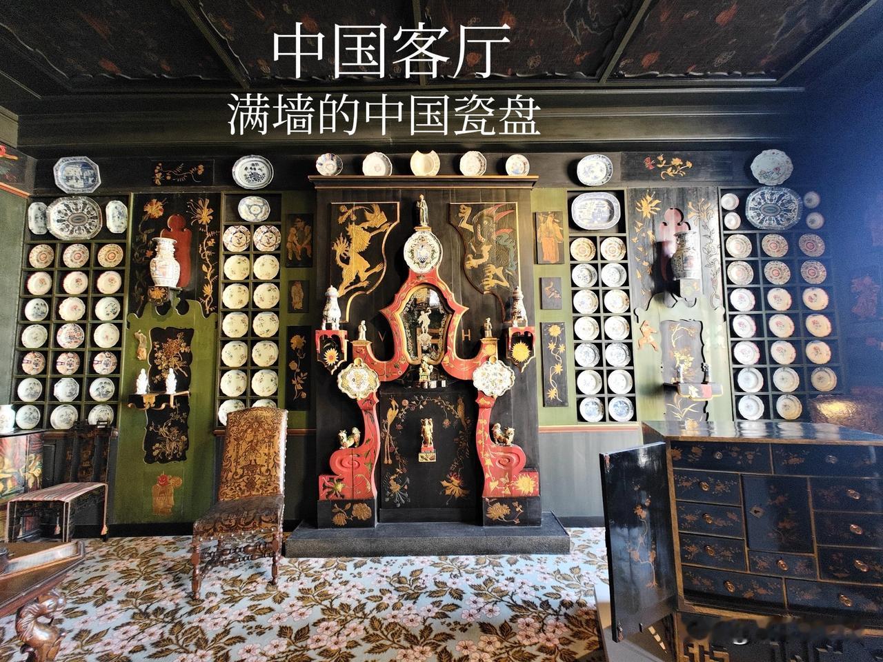 让人惊奇的是,这套故居里居然有一个中国客厅,是雨果亲自设计的,有一整面的“瓷盘墙”,大约有60件明清青花、粉彩瓷盘镶嵌在墙上。