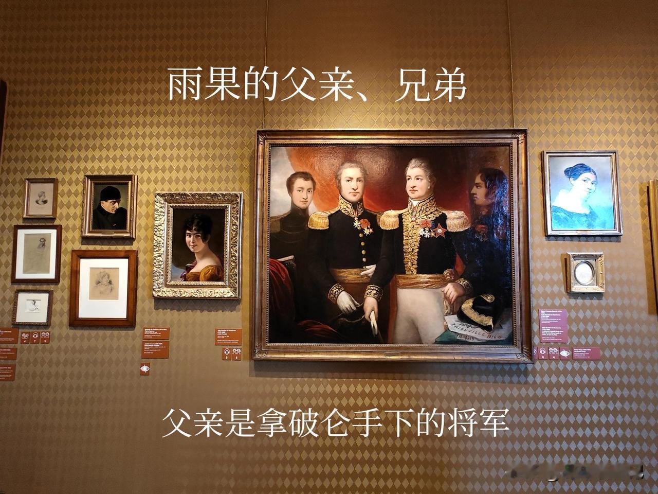 展示家族照片,雨果父亲(拿破仑手下的将军)、母亲、兄弟、妻子、以及早逝女儿。还有雨果年轻时期的大理石雕像。