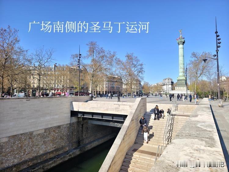 200多年过去,空旷的巴士底狱广场上一片空旷,只剩下石线标出的围墙位置。广场南侧是圣马丁运河南端码头,航道里停泊了几十艘游艇和船屋,一片和平幸福的生活景象。