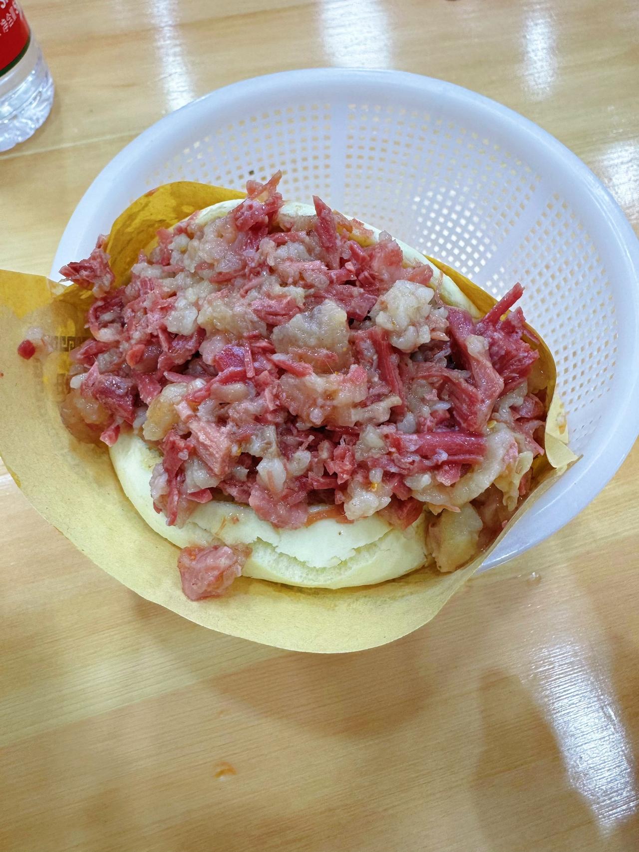 于是抱着试一试的态度,点了个肉夹馍,点了一份糊辣汤,一共消费21块。没想到我这一吃就是三天,13块的腊牛肉夹馍,这个肉量我已经很多年没见过了。肉虽然略有点咸,但是香味还够。完全对得起这价格,糊辣汤口味普通,但是价格太好了,6块钱一碗,丸子量也可以!