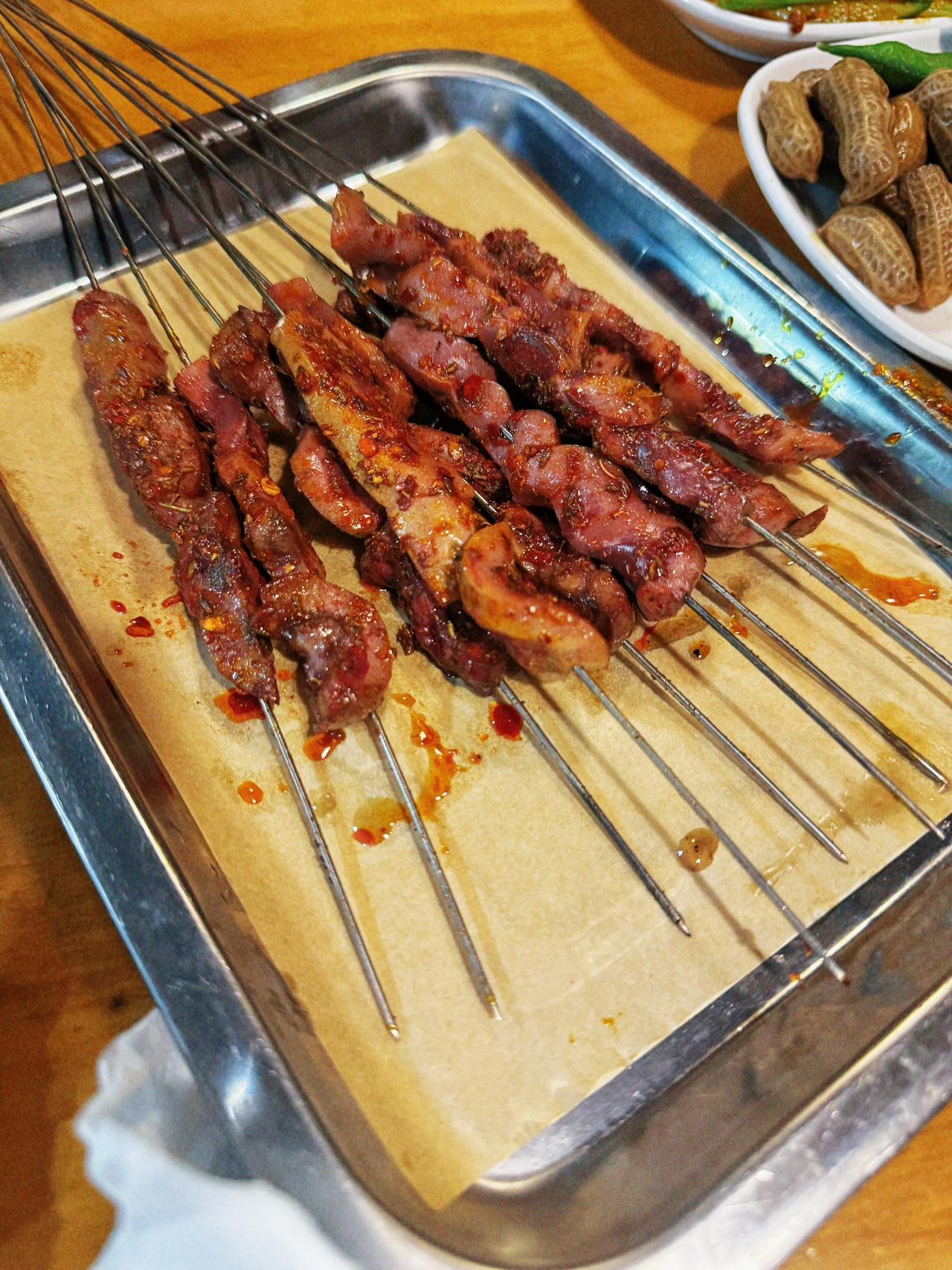 朋友约着喝酒,是城墙根下的一家馆子,他们家的招牌一个是生肉,一个是肉托馍,这东西倒是挺独特,尤其这肉托馍,基本是坊上各自家里边吃的一道美食,还有生牛肉,原味筋,烤腰子,花毛一体各种下酒菜,点了一桌子!
