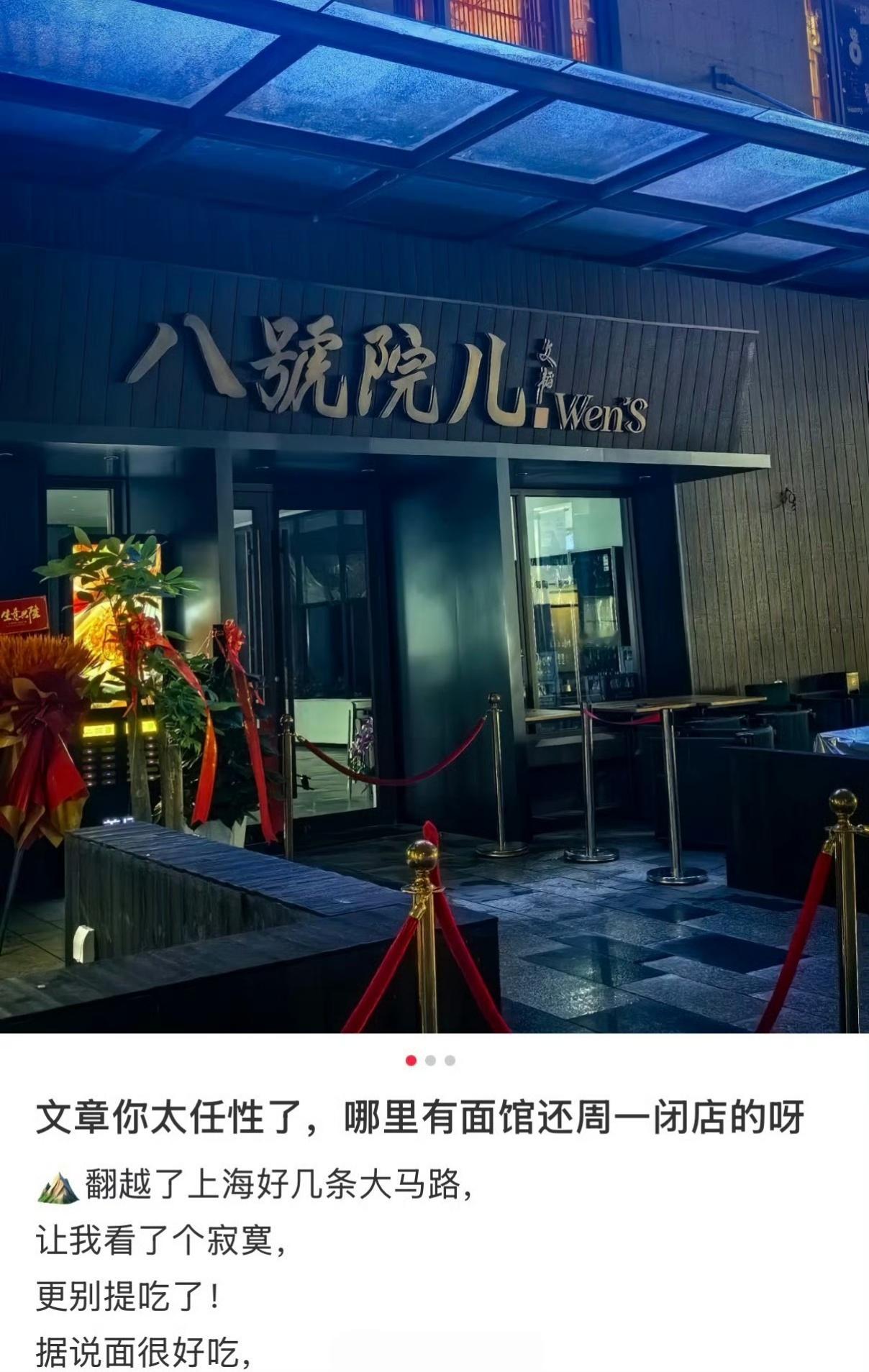 文章的上海餐馆,有人开始为他担心了。几天,文章在上海开的面馆“八号院儿”火的