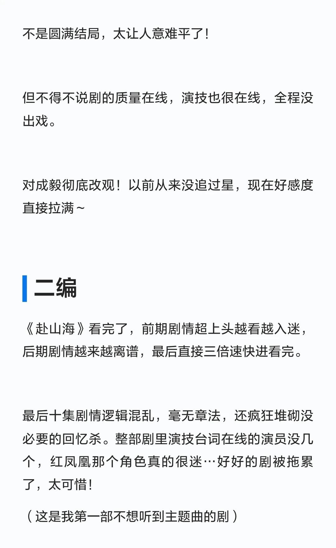 最近追剧成瘾,一口气看完《沉默的真相》《庆余年》《莲花楼》《长安二十四计》等剧,成毅演技在线,好感度提升。《赴山海》前期精彩,后期剧情混乱,逻辑不清。《天地剑心》两位主角传递的陪伴成长观令人感动。