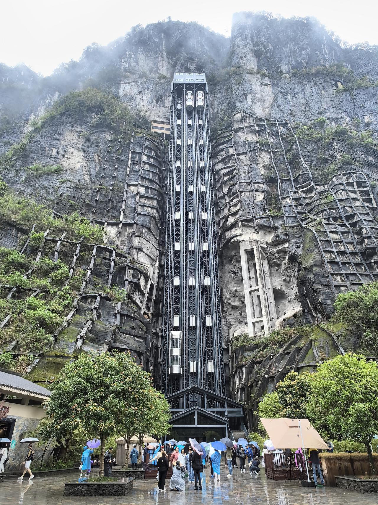 搭乘景区中转车片刻即至天生三桥入口,甫一踏入,便被天地造化之景深深震撼。宛若大自然以巨力在平地上凿出一方壮阔天坑,壁立千仞,气势雄浑。我们沿步道缓缓下行,乘电梯直抵坑底,脚下道路平缓舒展,天龙桥、青龙桥、黑龙桥三座天然石拱横跨天际,天龙天坑与神鹰天坑错落其间,石桥巍峨,坑谷幽深,一步一景皆显磅礴。细雨濛濛中游人如织,更有不少外国游客驻足流连,不愧是声名远扬的5A级胜境。