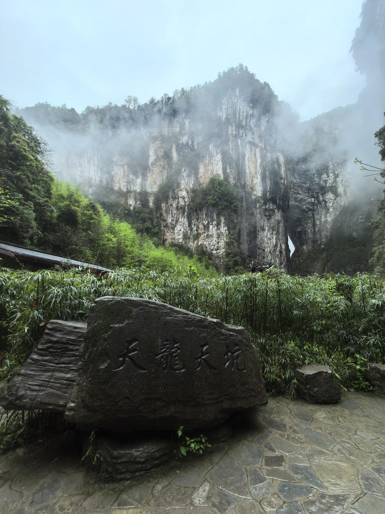 今日从武隆城区驱车前往天生三桥景区,沿途路况平整,唯弯道连绵,加之清晨微雨、山雾弥漫,一路缓行谨慎,约莫半小时便抵达景区停车场。