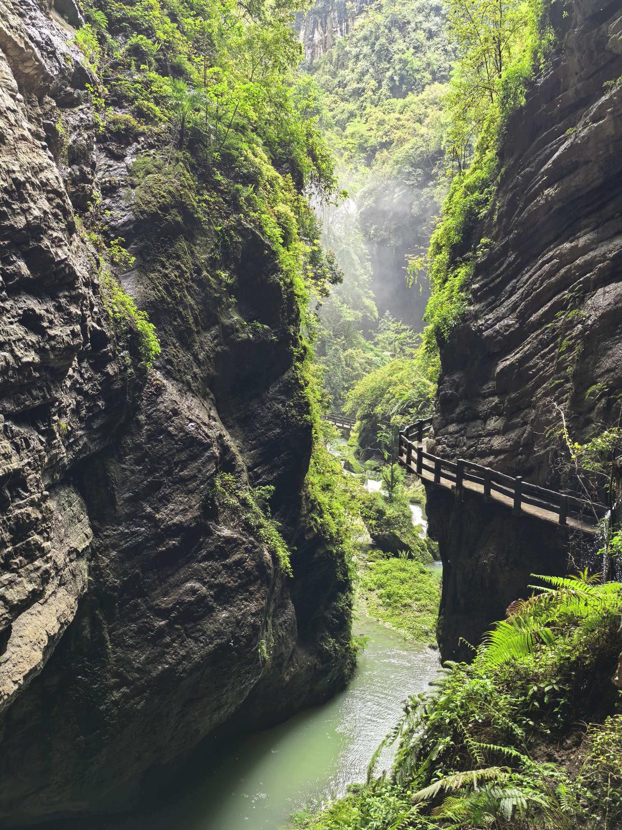 待到走出景区,已是午后两点有余,衣衫尽被雨雾打湿,却全无疲惫与懊丧,只满心震撼与沉醉。天坑之雄、地缝之秀,一阔一幽,一刚一柔,尽是大自然的鬼斧神工,此行不虚,余味悠长。