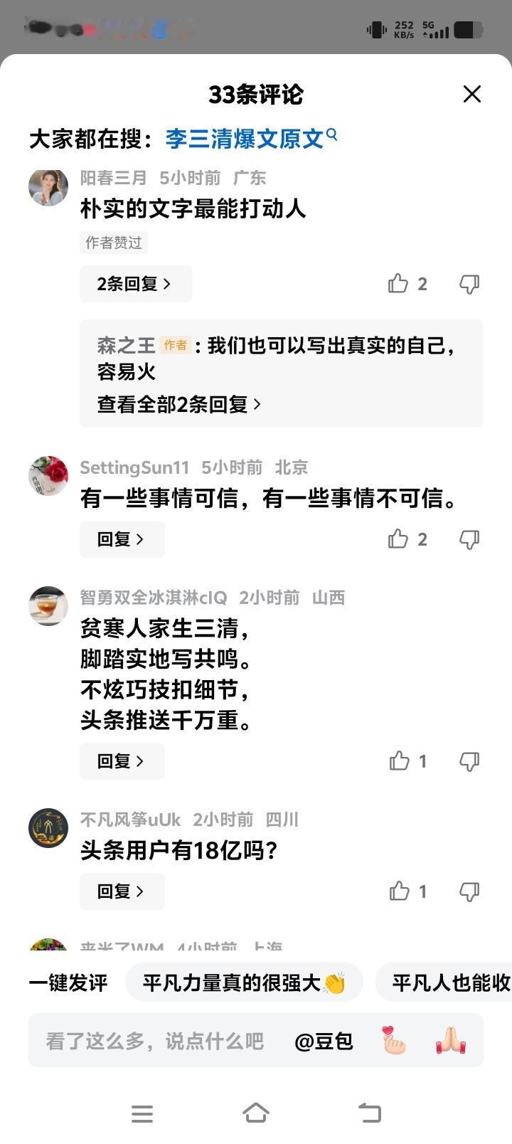 湖北红安李三清一篇800万阅读爆文狂赚4万:她笔下挤公交啃馒头的日常,戳中了18亿人不敢说的苦