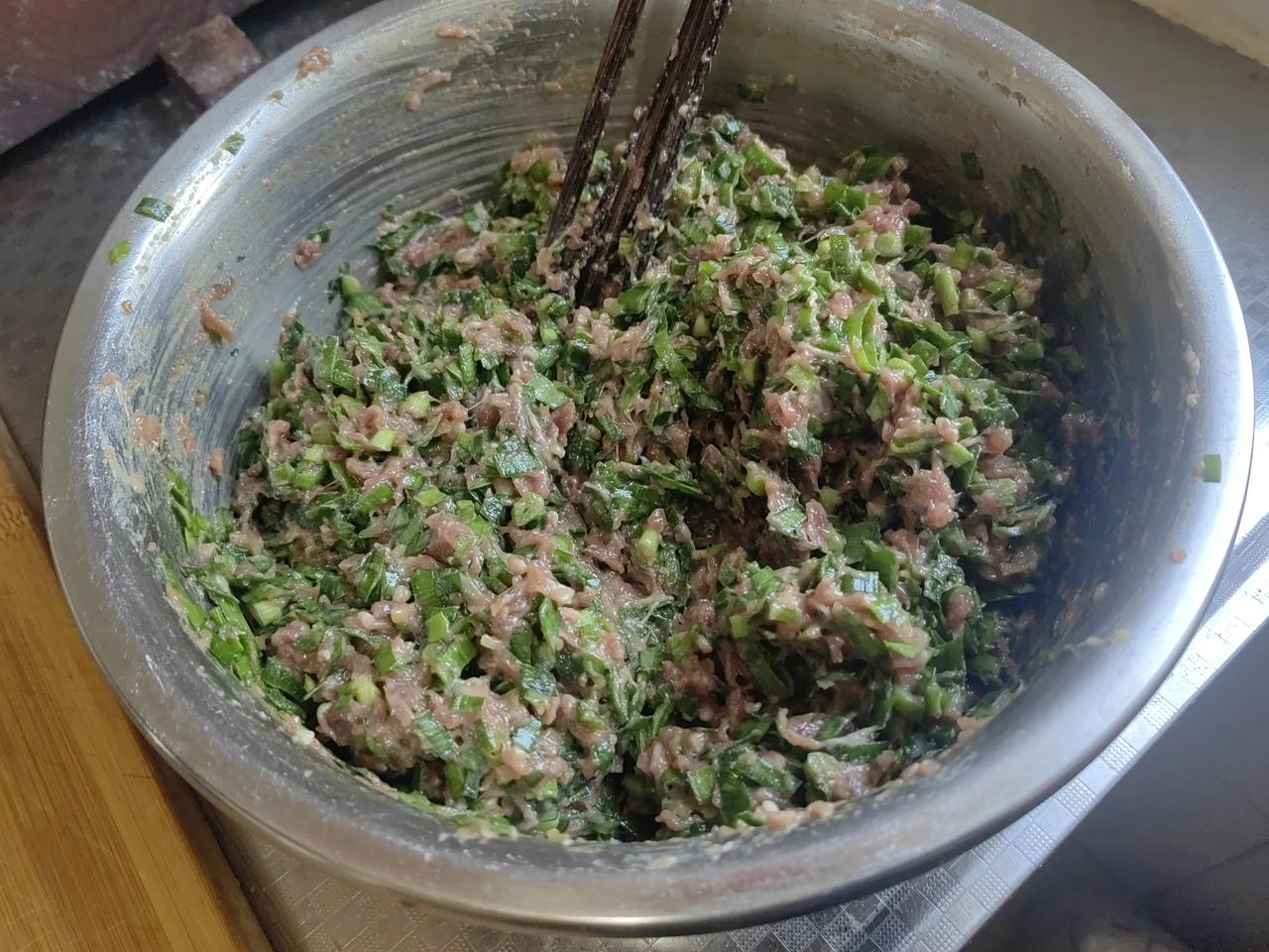 起来之后,我就开始剁牛肉摘韭菜和面,把一切都准备好了,就等她们回来一起包饺子。