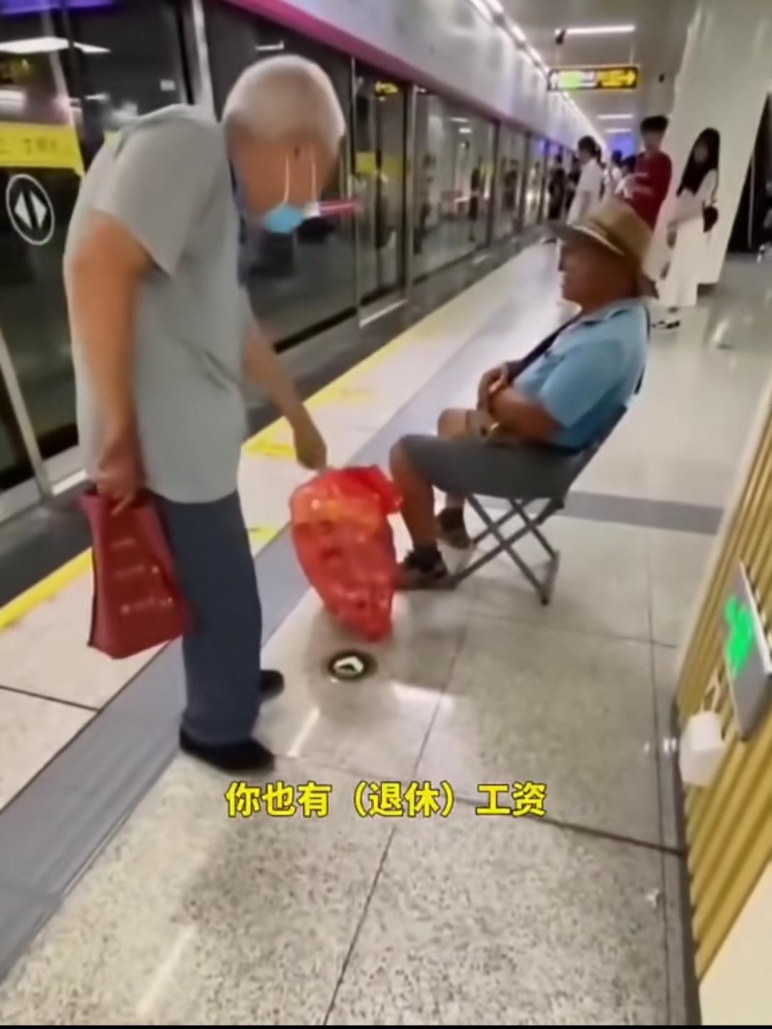 听到这句话,灰衣大爷迅速转过身,大步向他走去。边走边情绪激动的对蓝衣大爷说“我跟你说,今天我见了两个农村的,都可怜着的呀!你真是不知道?我跟你说,他们就发100多块钱,怎么生活?你也有(退休)工资,你要这个干什么?留给他们吧!”