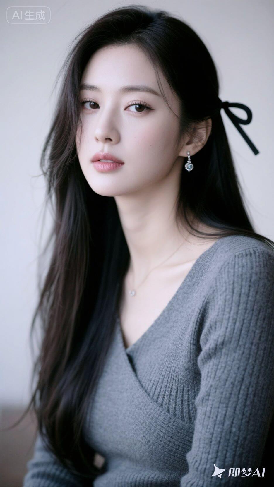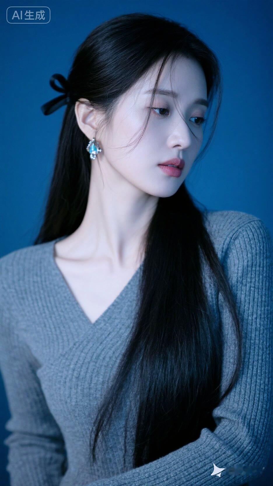 优雅黑发,蓝调背景,气质女神,时尚穿搭