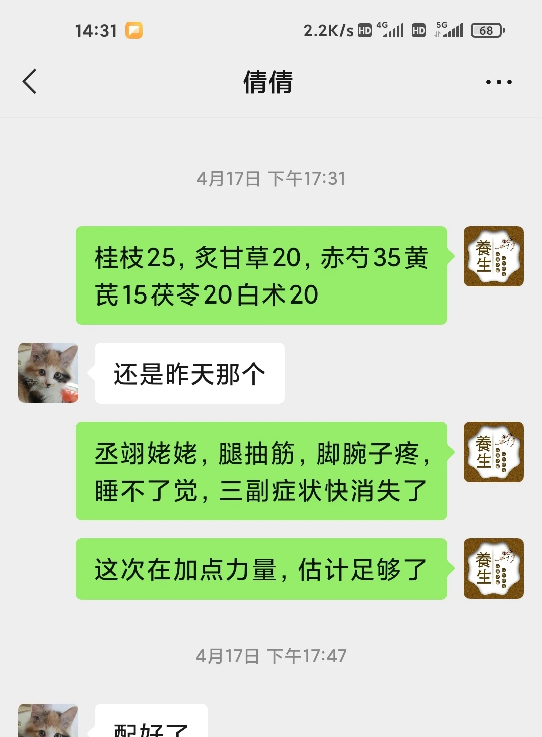 一周后,血压正常了,啥症状都没有,正常吃饭,睡觉也不头晕了!血压是天天的检测,一天比一天低,桂枝汤是天天都来点,还有血压泡水方,前面笔记里有!