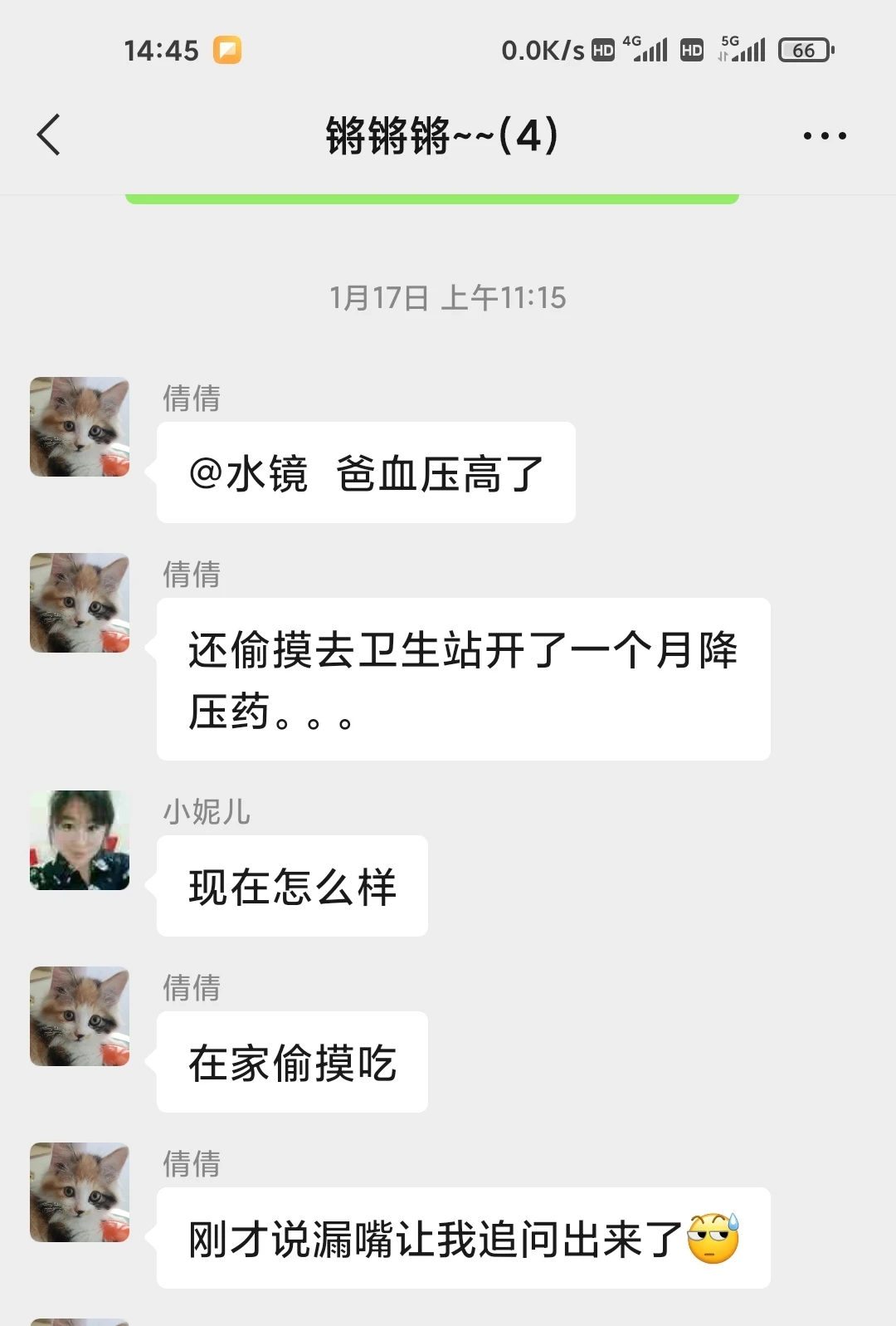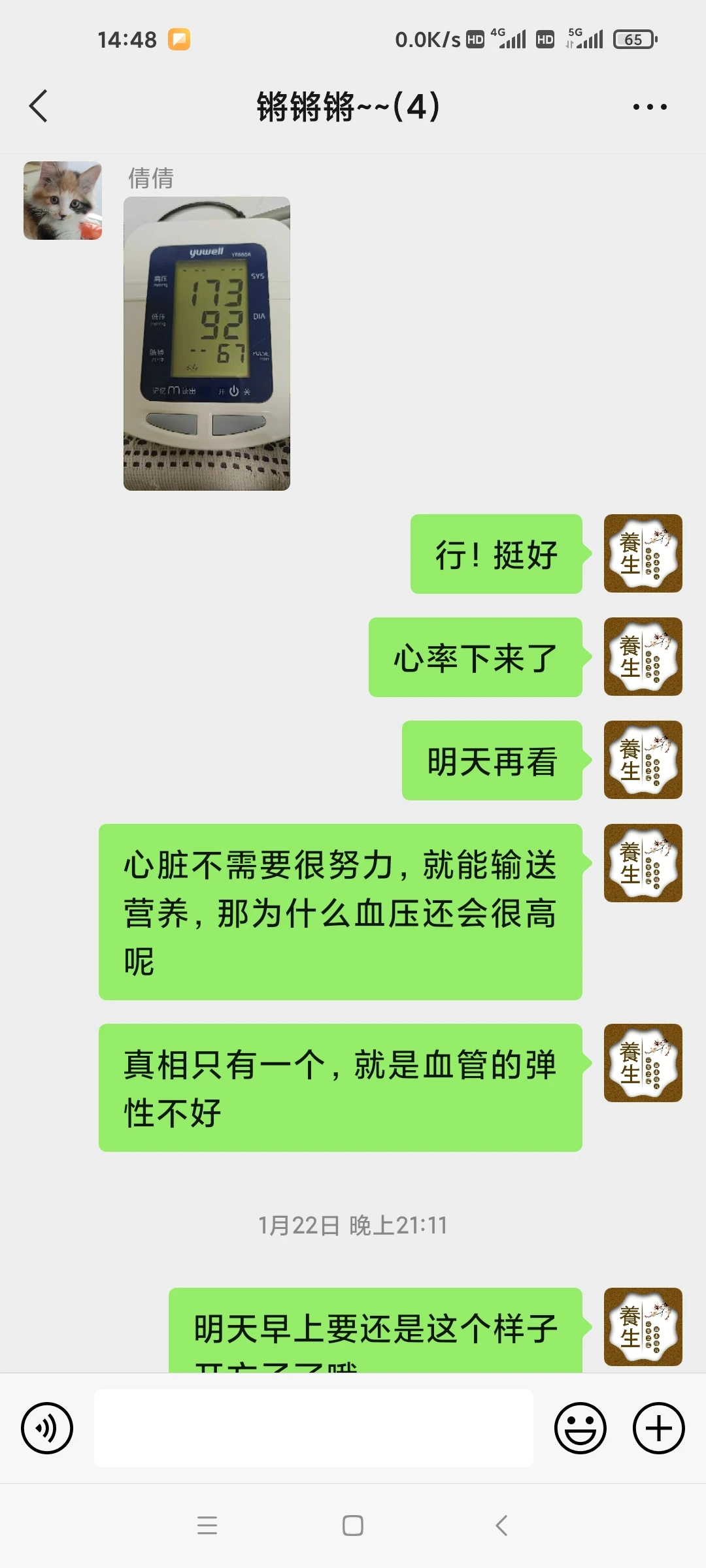 去年过年前老爸突然血压高,220,160偷猫儿的自己去社区了!老爸呀其实一直不信我的!我估计很多家庭都这样,不能形成统一的整体!没关系,让他老人家吃几天现代科技!要不也不会服气!