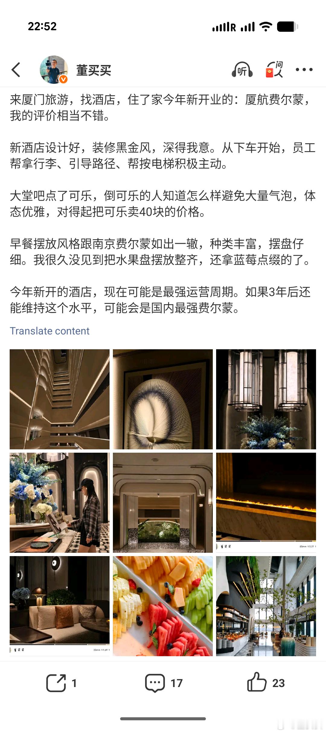 出差,又住厦门航空费尔蒙了。继续保持此前观点,开业快一周年了,服务水平依然在线。