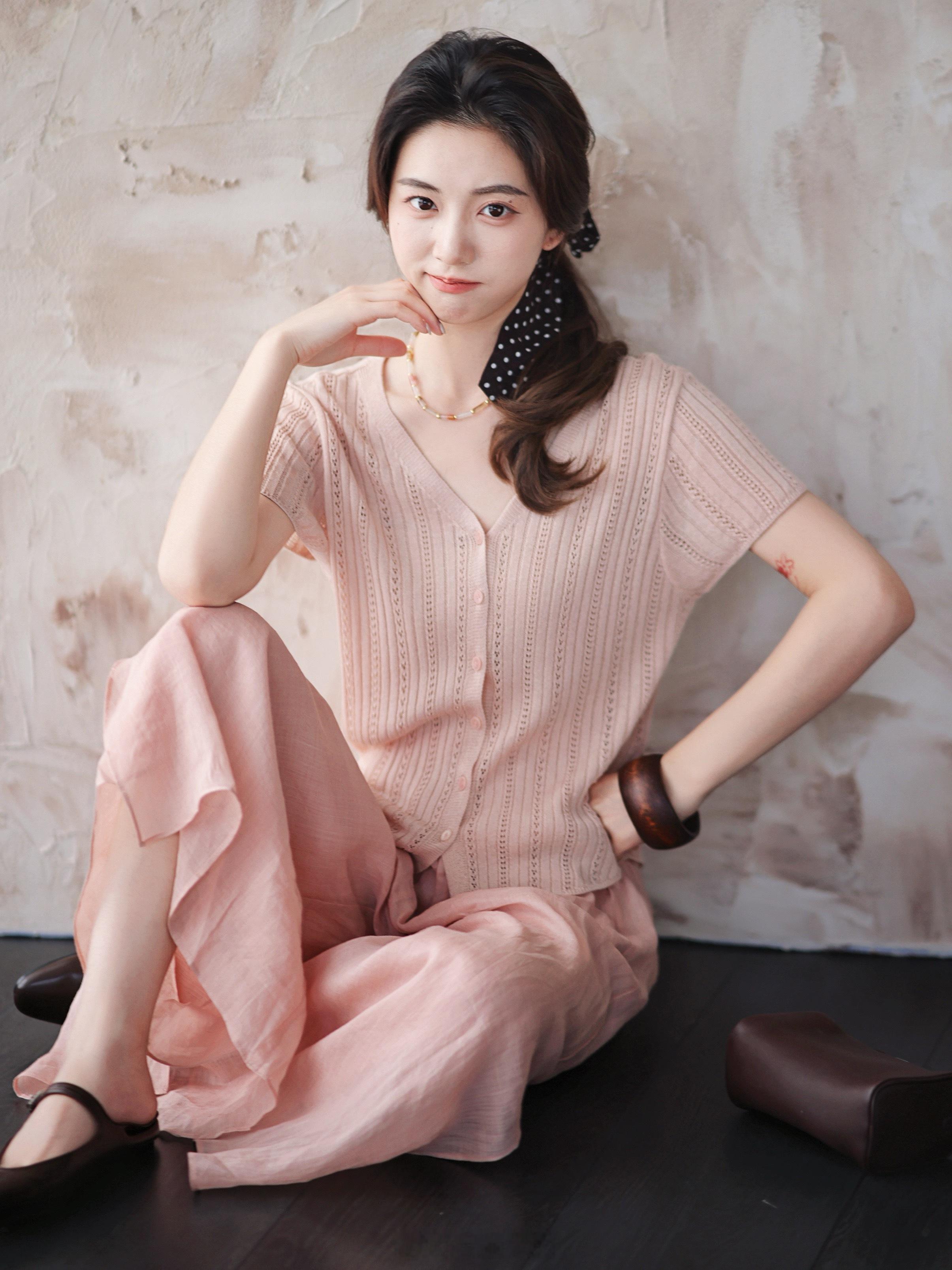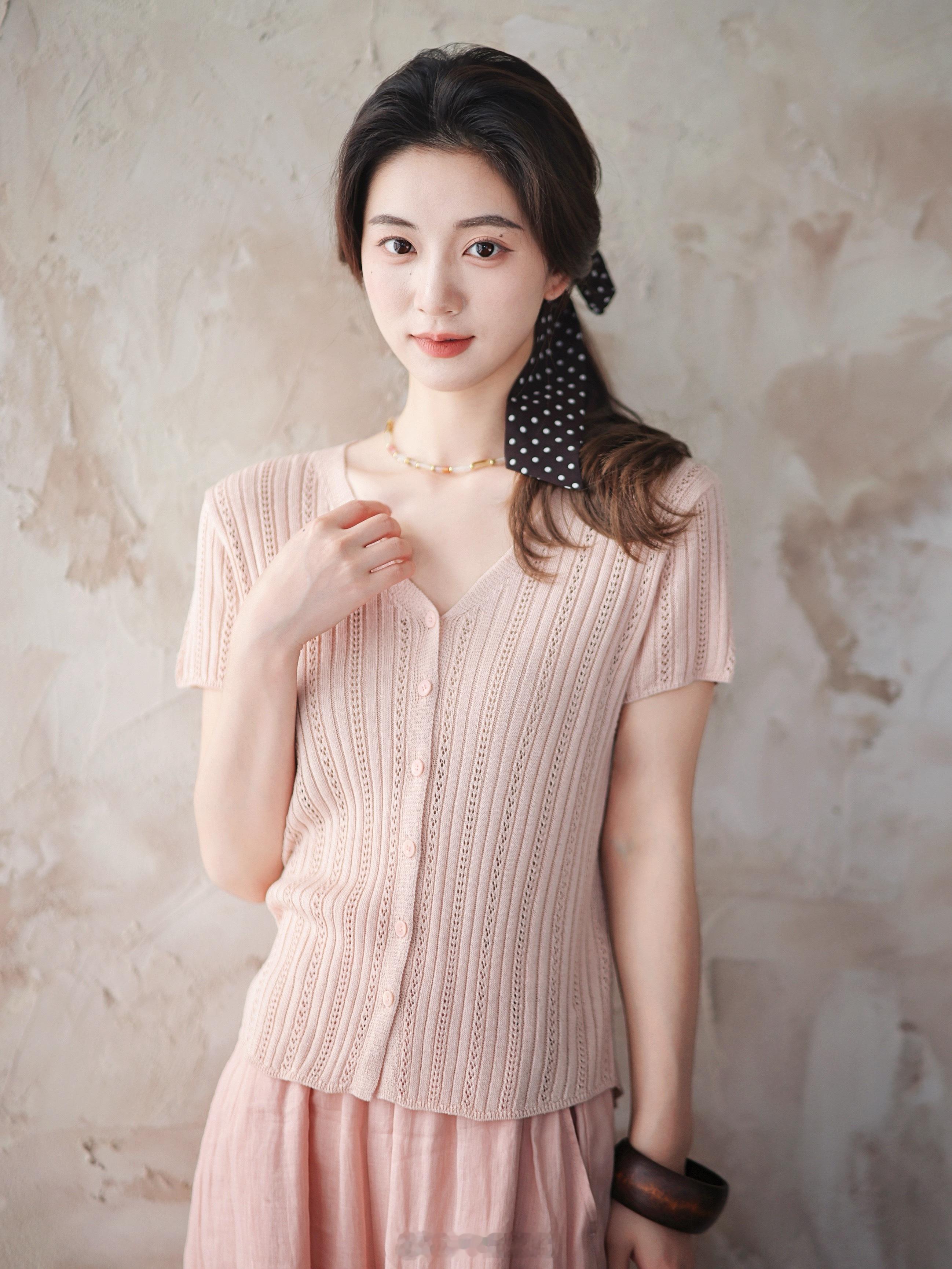 她从城市喧嚣走出来,踏入乡野晚风,绿碎花裙卸去了所有刻意的雕琢。唇角的红,是