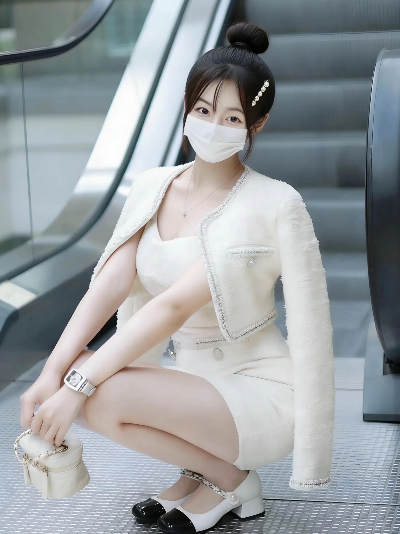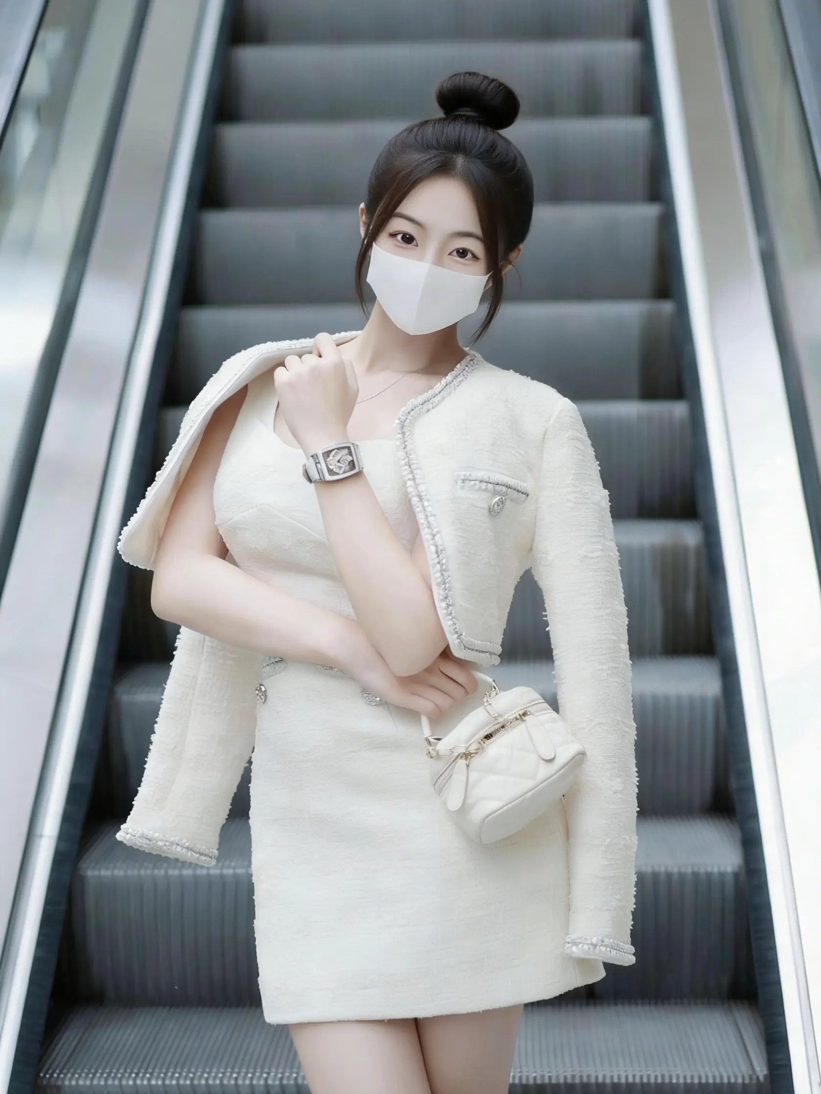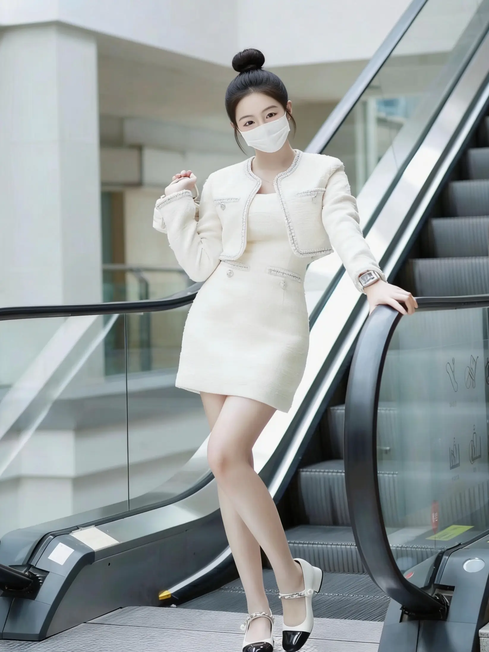 粗花呢面料+精致钻边,短款外套+收腰吊带裙,温柔又显贵,小个子也能穿出三七分比例~